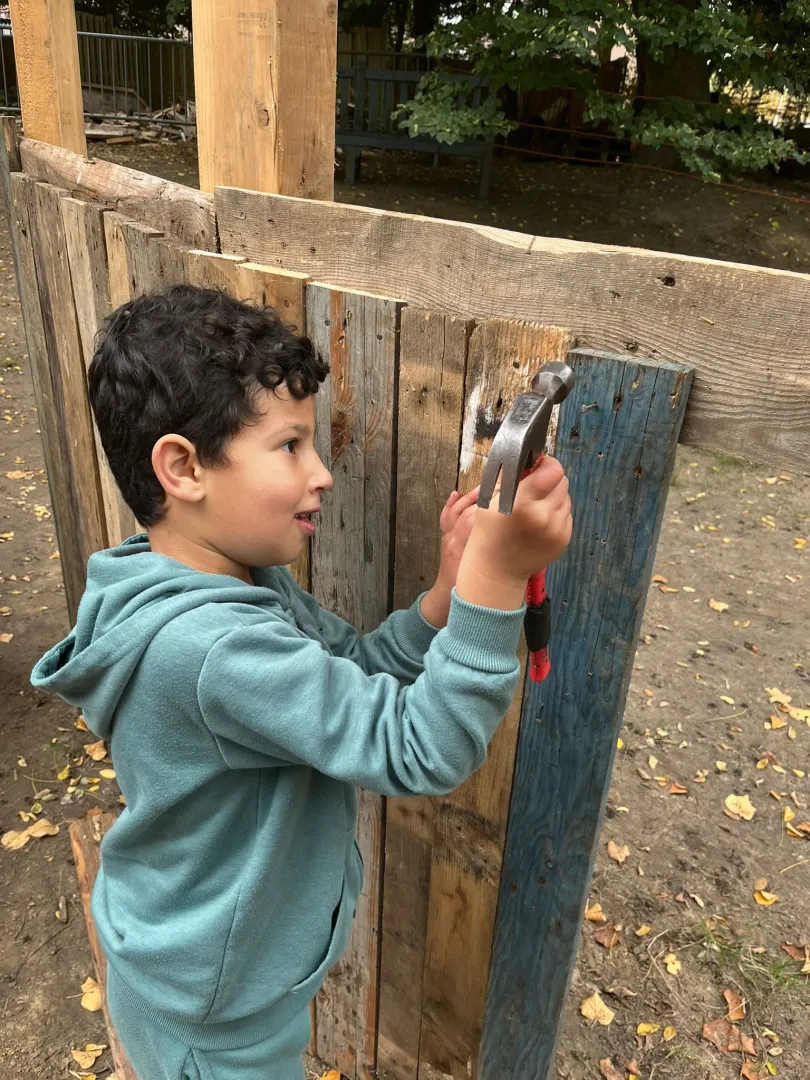 Tijdens de herfstvakantie hebben we ontzettend veel leuke dingen gedaan. We gingen regelmatig naar De Splinter, waar de kinderen niet alleen heerlijk konden spelen in de speeltuin, maar ook echte hutten konden bouwen van hout. Samen timmeren, slepen, bouwen en daarna trots hun bouwwerk laten zien dat leverde blije gezichten op!