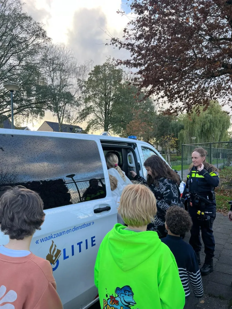 Deze maand kregen we speciaal bezoek, namelijk van de politie! Gelukkig kwamen ze niet om kindjes mee te nemen, maar om iets heel interessants te vertellen. De kinderen kregen namelijk een uitleg over het belang van goede fietslampjes en hoe ze die moeten gebruiken. Als verrassing kregen ze zelfs een setje fietslampjes mee naar huis voor hun eigen fiets. Aan het einde mochten ze ook nog een kijkje nemen in een echte politiebus, supercool!
