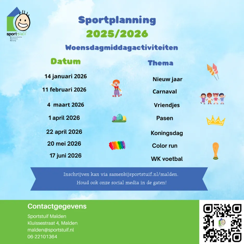 Wist je dat wij naast de BSO dit jaar ook superleuke woensdagmiddag activiteiten organiseren waar iedereen zich voor kan aanmelden? 🙌 Denk aan een spannend WK Voetbal, een knallende Color Run, en gezellige themamiddagen zoals carnaval en pasen. 🎨⚽ Daarnaast hebben we een speciale vriendjes & vriendinnetjes dag, waarop ieder kind iemand mee mag nemen. Hoe leuk is dat! 💛🤩