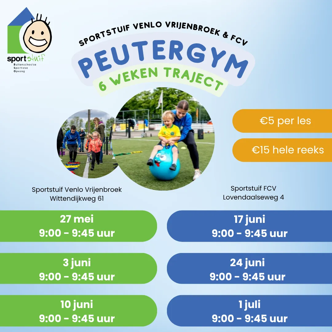 Goed nieuws: de nieuwe reeks staat al online en je kunt je hiervoor aanmelden! Van 27 mei t/m 1 juli organiseren we elke woensdagochtend Peutergym. Een gezellige en actieve start van de dag voor de allerkleinsten.