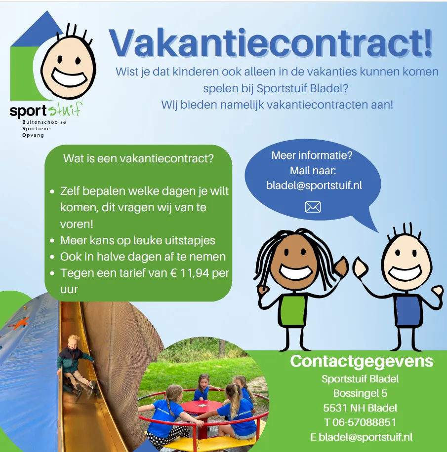 Wist je dat je bij Sportstuif Bladel ook een vakantiecontract kunt afnemen?