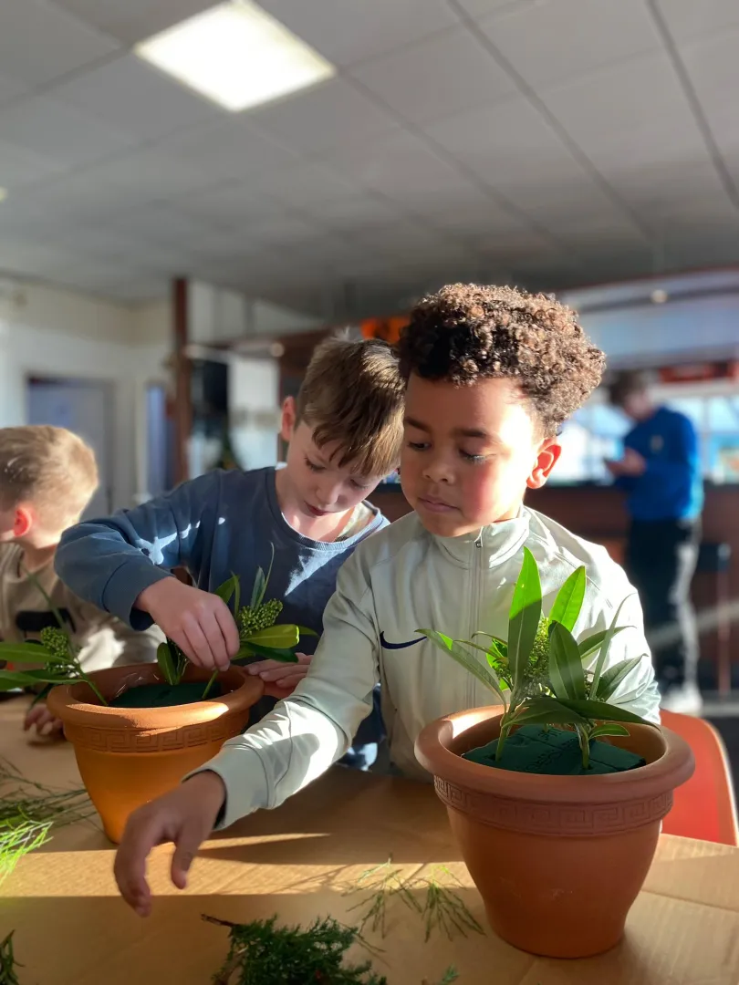 Vlak voor de vakantie kwam de moeder van onze collega Joep langs om samen met ons kerststukjes te maken. Dit viel erg in de smaak bij de kinderen. Iedereen luisterde aandachtig naar de uitleg en ging daarna enthousiast aan de slag. Er zijn prachtige creaties gemaakt! Wat was dit leuk om te doen.