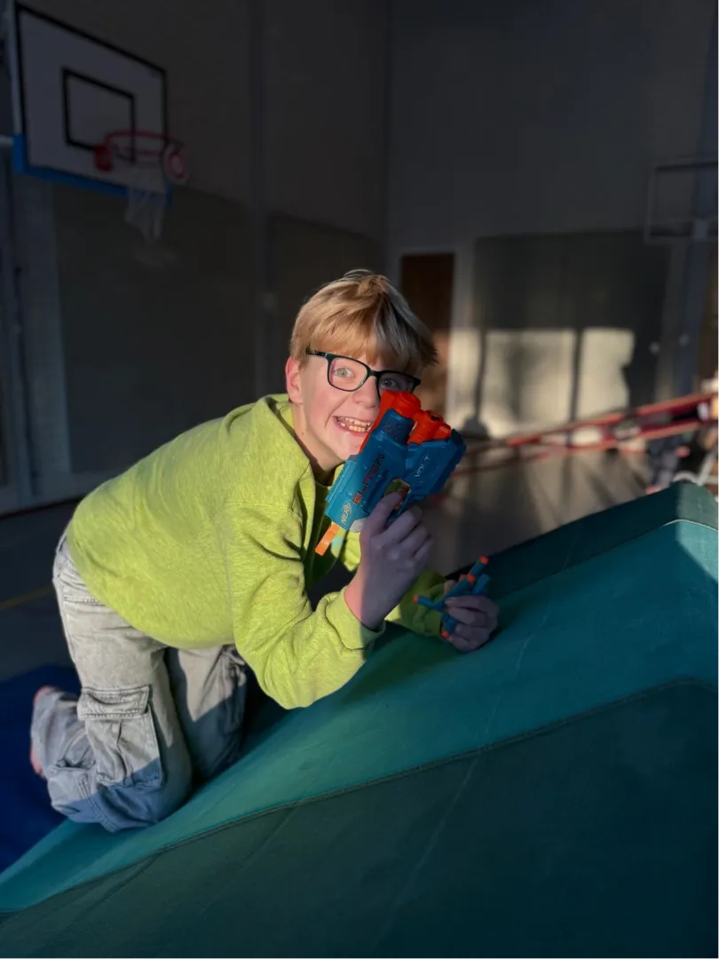 In de Sinterklaastijd deden we pietengym, compleet met een groot springkussen-parcours. Klimmen, springen en balanceren alsof we echte pieten waren! Voor de stoere kids was er ook een spannende Nerfbattle, waarbij tactiek en teamwork belangrijk waren.