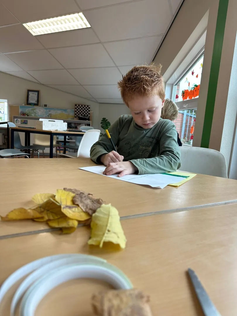 Natuurlijk mocht ook het knutselen niet ontbreken. Gewapend met lijm, scharen en bergen herfstbladeren maakten we de mooiste kunstwerken. Creativiteit van de kinderen kende geen grenzen, en onze knutseltafel zag eruit als een waar herfstbos!