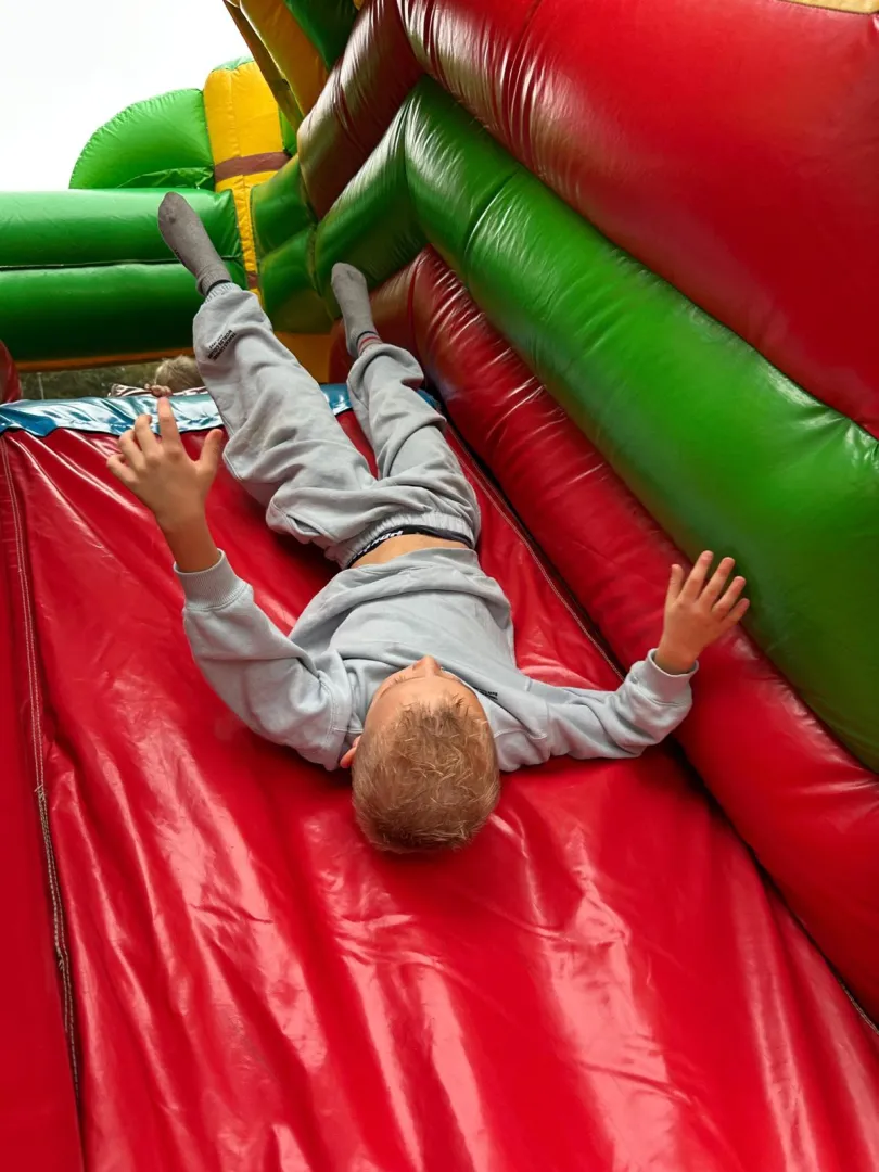 De dag erna konden de kinderen zich uitleven op het springkussen. Er werd volop gesprongen, gelachen en gespeeld! ๐คธ
