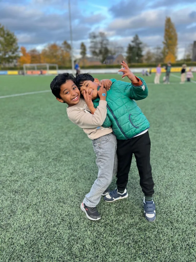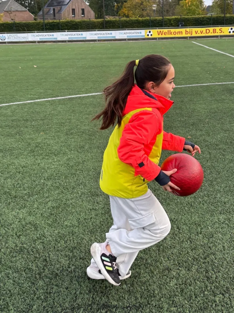 In de eerste week van oktober (van 29 september tot en met 3 oktober) begonnen we de eerste twee dagen van de maand met bewolking. We trokken de jassen aan en aan de hand van een aantal actieve spellen bleven we toch lekker warm. Er stonden weer drie leuke spellen op het programma, namelijk: het koeriersspel, supertikkertje en doelentrefbal. Bij supertikkertje zijn alle kinderen de tikker. Ook de tikkers moeten bij dit spel opletten, want je kan door iedereen afgetikt worden! Word je getikt, dan moet je uit het veld. Je moet vervolgens heel goed onthouden wie jou heeft getikt, want als diegene af wordt getikt door iemand anders mag je zelf weer meedoen! De kinderen zijn groots fan van dit soort spelvarianten en de fanatieke kant van de kinderen kwam daardoor naar boven. Iedereen deed zijn best en het werd een spannend spel! Op dinsdag stond er een nieuwe activiteit op het programma voor de jongste kinderen, namelijk octopus tikkertje. Bij dit spel heeft elke tikker een hoepel vast. Als de tikker iemand tikt, wordt diegene een ‘’tentakel’’ en pakt diegene dezelfde hoepel vast. Zo gaan de kinderen samen tikken. Dit spel was een leuke activiteit om het samenspel en de samenwerking tussen de kinderen te stimuleren. Kinderen leren zo om rekening te houden met elkaar, omdat bijvoorbeeld niet iedereen op hetzelfde tempo loopt. Op woensdag hadden de Slingertouw scholen een studiedag. In de ochtend mochten de kinderen zelf kiezen welke activiteit ze graag wilden doen. Na het succes van maandag kozen de kinderen superbal. Veel van de jongste kinderen kenden dit spel nog niet, maar met behulp van de oudere kinderen hadden ze het spel zo door. Ondanks het grote leeftijdsverschil tussen de kinderen kon iedereen meedoen en kon iedereen de bal veroveren. De gehele groep was dan ook enthousiast over het spel. Leuk om te zien dat iedereen zo betrokken werd! We sloten de week af met politie en boefje, trefbal met levende pionnen en een nieuwe voetbalactiviteit, namelijk: Scoren als Vivianne!