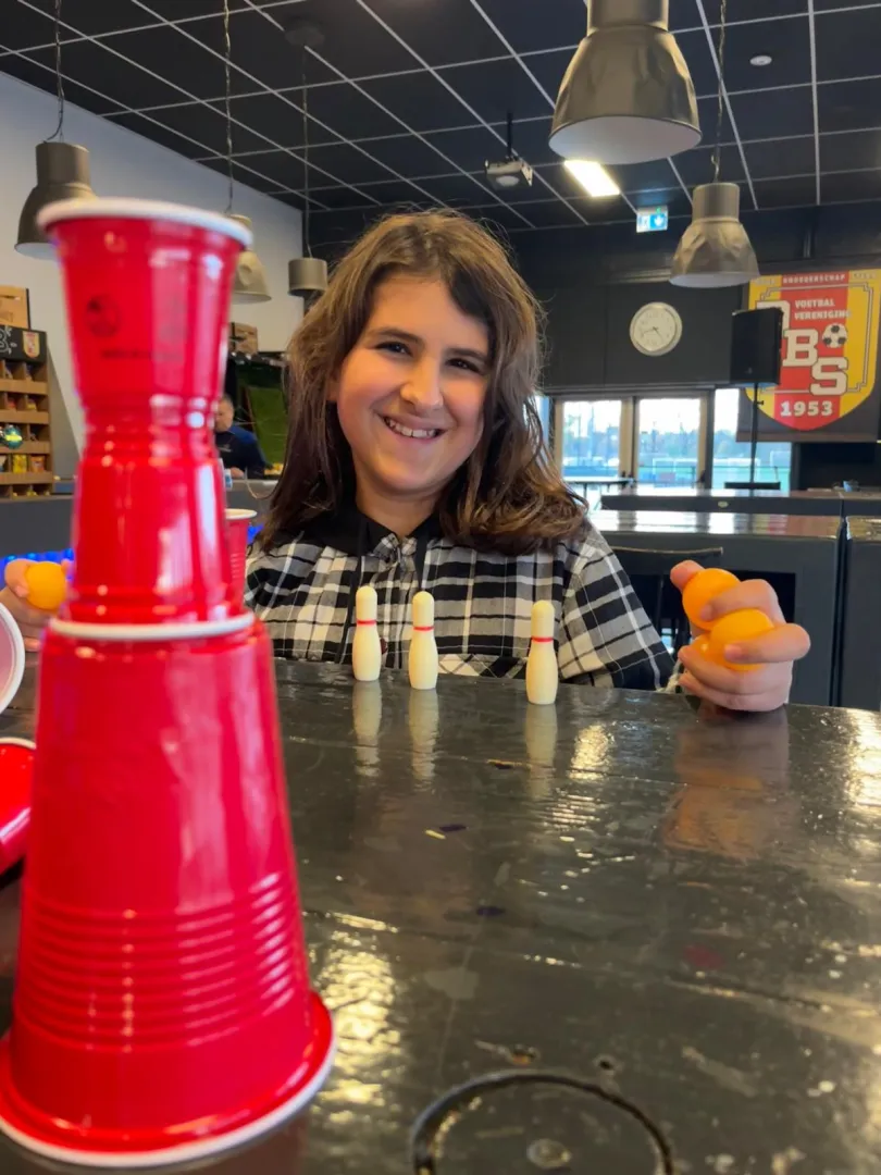 De laatste week van oktober (van 27 oktober tot en met 31 oktober) startte met regen. We speelden daarom opnieuw binnen. De kinderen konden kiezen tussen Tik Tak Boem, minigames en ‘’Wat ben ik?’’. Tik Tak Boem een quizvorm waarbij de kinderen vragen moeten beantwoorden voordat de timer, oftewel de ‘’bom’’, afgaat. Als je een vraag goed hebt beantwoord is degene die naast je zit aan de beurt. Zo wordt de beurt steeds doorgegeven. Gaat de bom af terwijl je een vraag moet beantwoorden, dan ben je af. Zo kijken de kinderen wie er aan het einde van het spel overblijft. Bij Wat ben ik? proberen de kinderen er aan de hand van gesloten vragen achter te komen welk voorwerp, dier, etenswaar, etc. ze zijn. Ook deden we minigames, zoals mini curling en meerdere spelletjes met red cups. Zo moesten de kinderen pingpongballen in de bekers gooien en moesten ze de bekers omgooien. Vanaf dinsdag konden we weer naar buiten. We speelden het safarispel, rupsbal en deden een voetbalpartij op een half veld. Op woensdag stonden er maar liefst vijf activiteiten op het programma. De jongste kinderen werden opgesplitst in twee kleinere groepen. Zij deden om beurten twee activiteiten. Er werd afgewisseld tussen het spelen met de parachute en overlopertje. Overlopertje is een tikvorm, waarbij de kinderen goed na moeten denken. Hun taalkennis wordt hierbij getest. De kinderen moeten naar de overkant zien te komen, maar als zij een dier met de gekozen letter van die ronde weten te benoemen, kunnen ze niet getikt worden. Als de tikker bijvoorbeeld zegt: ‘’een dier met de b’’ kunnen de kinderen dieren benoemen zoals een beer, een baviaan of een bever. Het kind dat dit als eerste doet kan ‘’vrij’’ naar de overkant lopen. De rest van de kinderen moet naar de overkant rennen zonder getikt te worden. Als je getikt wordt, word je de nieuwe tikker. De oudere kinderen konden kiezen uit drie verschillende spellen, namelijk: vulkanen en draaikolken, hoepelpong en de winkel van Sinkel. Op vrijdag stonden er activiteiten op het programma in het thema van Halloween. De kinderen kwamen verkleed naar de BSO, dus ook hier maakten we er een griezelige bedoeling van. We deden zombietikkertje, spokenjacht en pompoen bowling. En zo stond november alweer voor de deur. Tot volgende maand!