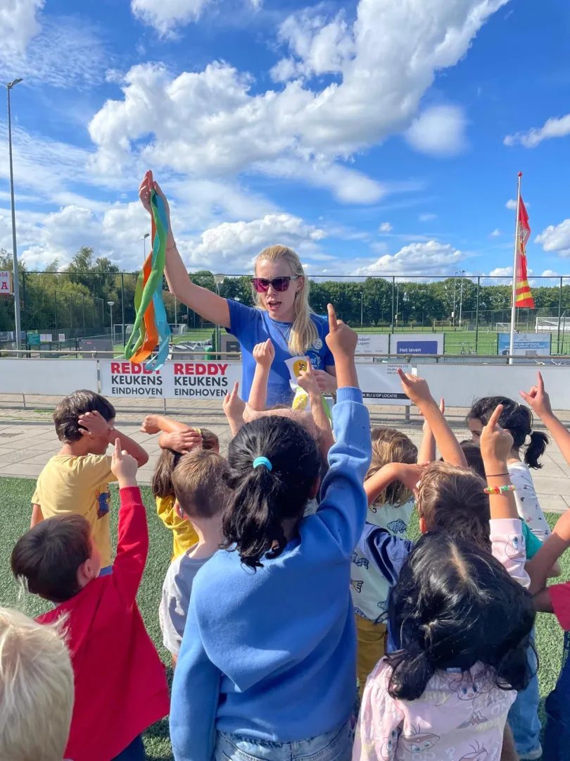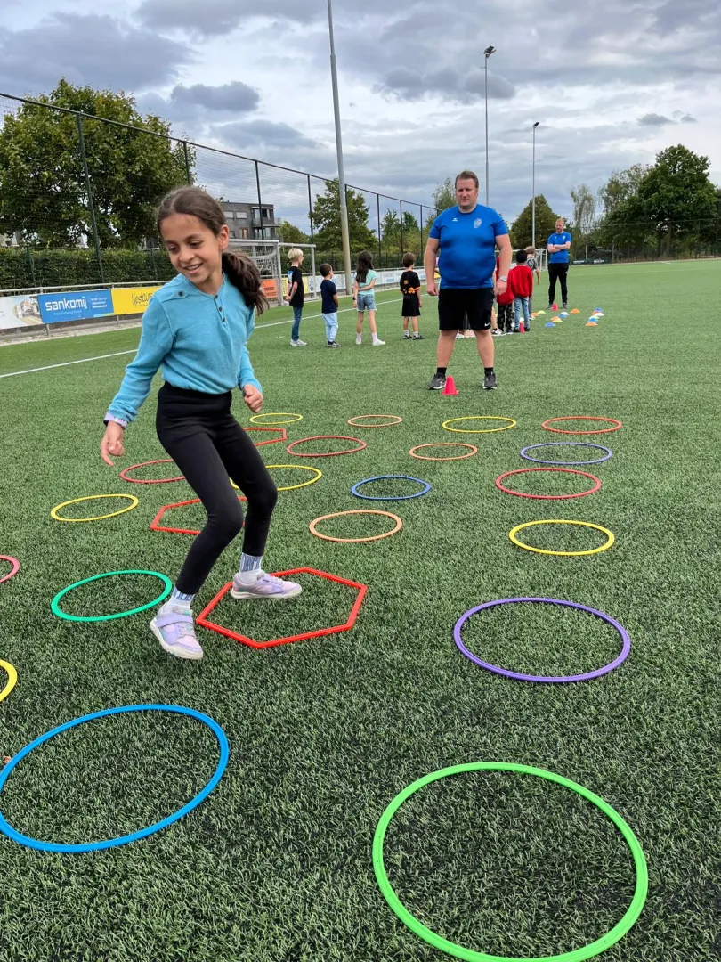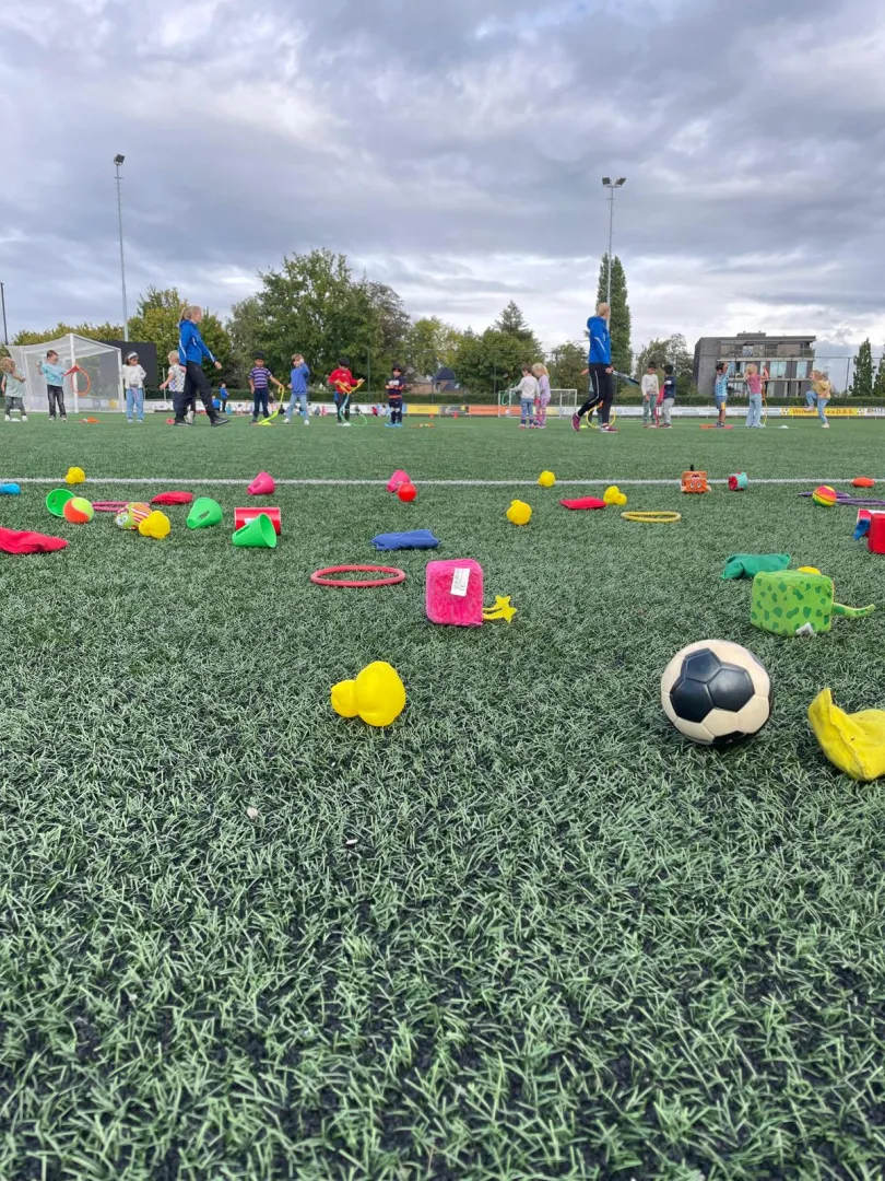 Het was inmiddels weer herfst geworden. Daarom deden we op maandag activiteiten in het thema van de herfst. We speelden vallende bladeren, eikeltjes rapen en vijverrace. Bij eikeltjes rapen werden de kinderen in verschillende teams verdeeld. Ieder team heeft een eigen hoek in het speelveld. De kinderen veranderen in eekhoorns en moeten zo veel mogelijk eikels (pittenzakjes) verzamelen met hun team. Als alle eikels weg zijn, mogen ze eikels gaan ‘’stelen’’ bij de andere teams. Zo probeert ieder team zo veel mogelijk eikels te verzamelen. Op woensdag stond er een speciale activiteit op het programma van de jongste kinderen, namelijk een voetbalactiviteit. Voor de jongste kinderen zijn dit soort activiteiten soms nog wat lastig, omdat hun grove motoriek nog volop in de ontwikkeling is. Een bal onder controle houden met je voeten is daardoor net wat lastiger voor deze groep in vergelijking met de oudere kinderen. Toch gingen de kinderen enthousiast aan de slag met deze uitdaging. De activiteit die ze gingen doen was de regenboograce. De kinderen begonnen met een dribbeloefening tussen twee pionnen en moesten vervolgens een tennisbal of pittenzakje op één van de hoedjes leggen. De kinderen gingen met volle concentratie aan de slag en ze vonden het dan ook erg leuk om de uitdaging aan te gaan. Iedereen deed enthousiast mee en de activiteit was dan ook zeker voor herhaling vatbaar! Op donderdag was het de beurt aan de oudere kinderen om een voetbalactiviteit te doen. Zij deden een vijf tegen twee positiespel. Ook hierbij werd de motoriek van de kinderen getraind en daarnaast werden hun hersenen op de proef gesteld gedurende deze tactische activiteit. We sloten de week af met levend stratego. Zo zat deze maand er alweer op. Tot volgende maand!
