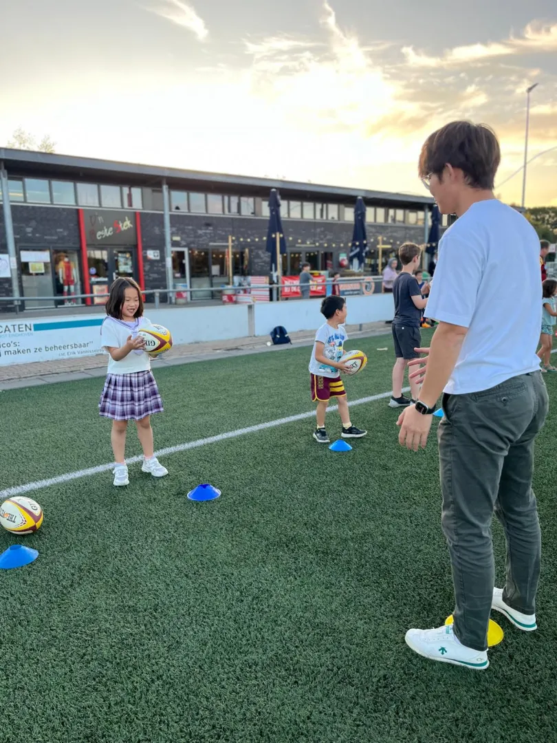 Op maandag ging basisgroep drie aan de slag met het oefenen van een sport, namelijk handbal. De kinderen werden in twee teams verdeeld en speelden steeds vier tegen vier. Door te werken met een doordraaisysteem kwam iedereen aan de beurt, maar was er ook tijd om uit te rusten na de fanatieke partijtjes. Op dinsdag hadden de Slingertouw scholen hun schoolreisje. Daardoor waren er veel afmeldingen en was het een rustige dag op de BSO. Met blije gezichtjes en gave verhalen kwamen de kinderen uit school. Bij het fruitmoment hebben we nog even gekletst over de avonturen van de kinderen en daarna was het weer tijd voor de activiteiten. We deden de volgende activiteiten: vissen, hokbal en teamjagerbal. Bij hokbal probeert een tikker de overige kinderen te tikken. Als je getikt bent moet je naar een ‘’hok’’ gemaakt van pionnen. Vanuit dit hok moeten de kinderen overgooien met één van de kinderen die nog niet afgetikt is. Als dit lukt, ben je bevrijd en mag je weer meedoen. Ook deze week gingen we aan de slag met bewegend leren. We gingen tijdens deze activiteit verder met het oefenen met de getallenlijn. Ditmaal speelden we iemand is ‘m, niemand is ‘m met de getallenlijn. Op vrijdag deden we groepsketting estafette, het honkenloopspel en cricket. We sloten de week af met een superleuke ouder-kind activiteit op de vrijdagavond, namelijk food & rugby. Alle deelnemers hadden overheerlijke hapjes meegenomen uit alle delen van de wereld. We hebben heerlijk gegeten met z’n allen en daarna was het tijd voor een rugby clinic van meester Rens. Er kwamen verschillende oefeningen en spelvarianten aan bod die de kinderen samen met hun ouders of verzorgers uit konden voeren.