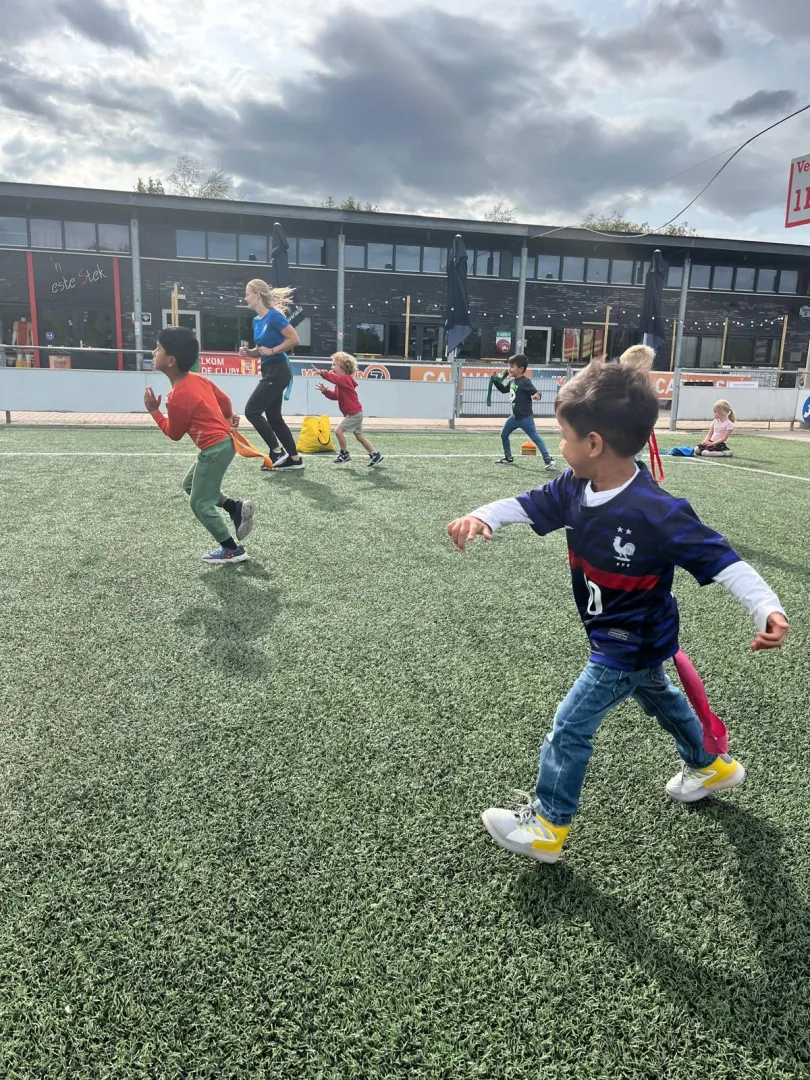 De eerste week van september was de derde schoolweek van dit schooljaar. We merkten dat de kinderen weer beetje bij beetje gewend raakten aan het schoolritme en dat de net gestarte kinderen steeds meer hun plekje weten te vinden op onze BSO. Op maandag begon de week met wat bewolking. Desalniettemin gingen we naar buiten gedurende de activiteiten. We speelden vos vos hoelaat is het, museumwachter en hoepelbal. Tijdens het vrij spelen speelde een grote groep kinderen bij de sportcontainer. Ze oefenen hier met klimmen en klauteren en krijgen deze ‘’skill’’ dan ook steeds beter onder de knie. Op woensdag stond er een bewegend leren activiteit op het programma. Dit is een activiteit waarbij er niet alleen gefocust wordt op de ontwikkeling van de motoriek, maar ook de hersenen worden aan het werk gezet. Deze keer ging het om de activiteit getallenlijn tikkertje. Daarbij moeten de kinderen de juiste plek op een getallenlijn zien te vinden als ze getikt zijn. Als dit gelukt is, mogen ze weer meedoen. Bij deze activiteit oefenen de kinderen met tientallen. De jongste kinderen speelden estafette memorie. Een activiteit die het altijd mega goed doet bij deze leeftijdscategorie, omdat veel van de jongere kinderen graag memorie spelen. De kinderen leggen gedurende de activiteit een parcours af en mogen vervolgens twee kaartjes omdraaien. Als de kaarten overeenkomen mogen ze meegenomen worden naar het eigen team. Als de kaartjes verschillend zijn, moet het parcours opnieuw afgelegd worden en kan één van de teamleden het opnieuw proberen. We sloten de week af met een grote voetbalpartij, olifantenjacht en Super Mario trefbal.