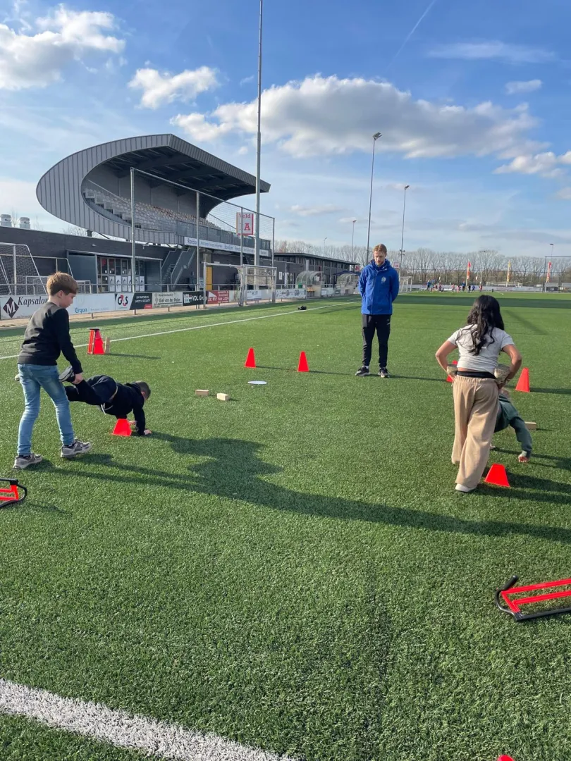 We startten de laatste week van de maand (van 23 maart tot en met 27 maart) met activiteiten in het thema van het Suikerfeest. Basisgroep een deed lekkerland viesland, basisgroep twee deed suikerfeestvoetbal en basisgroep drie deed de activiteit moskee bouwen. Dit is een estafettevorm waarbij de kinderen materialen moesten verzamelen om zo hun eigen gebouw te bouwen. Op dinsdag werd er hindernisestafette, hokbal, kwartet en teamjagerbal gedaan. Hokbal is een tikspel waarbij de kinderen in een afgezet vak moeten gaan staan wanneer ze getikt zijn. Vanuit dit vak moeten ze een bal overgooien met een vrije speler. Als dit lukt, mag het kind in het ‘hok’ weer meedoen met het spel. Op donderdag stond er slecht weer voorspeld, maar tussen de buien door vonden we een gaatje om toch naar buiten te gaan voor de activiteiten. Basisgroep een deed een van hun favoriete spellen, namelijk kat en muis. Hierbij worden twee of drie kinderen gekozen als katten. Zij proberen de lintjes, oftewel staarten, af te pakken van de muizen. Basisgroep twee en drie konden die dag tussen een aantal activiteiten kiezen. Ze konden kiezen tussen het honkenloopspel, acrogym en een voetbaltoernooi in de pannakooi. Vooral de laatste twee activiteiten waren druk bezocht, want veel van de meiden zijn fan van acrogym en veel van de jongens juist van voetbal. We sloten de maand af met vissen, chaosbal en koning van het veld. Tot volgende maand!