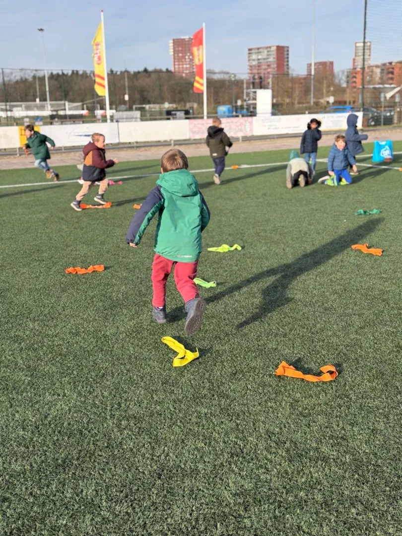 We begonnen de derde week van januari (van 19 januari tot en met 23 januari) met een frisse wind. Daarom was het belangrijk dat de kinderen lekker warm werden van de activiteiten. Basisgroep een ging daarom aan de slag met bootcamp tikkertje. Bij dit tikspel krijgen de kinderen verschillende opdrachten als ze af zijn. De opdrachten zijn allemaal fitness gerelateerd. Denk bijvoorbeeld aan jumping jacks, burpees, knieheffen, etc. Basisgroepen twee en drie deden vogelverschrikker tikkertje en vakjagerbal. Basisgroep vier ging aan de slag met rupsbal. Dit is een slagbalvorm waarbij de kinderen de bal in het veld moeten schoppen in plaats van slaan. Op dinsdag bleef het frisjes, maar gelukkig stonden er weer een aantal actieve spellen op het programma, namelijk: Annemaria Koekoek, het ABC renspel, superbal en voetballen. Op woensdag knapte het weer op en konden we met de kinderen in het zonnetje spelen. We deden een lintjes race, makers en krakers, ik hou van Holland en ultimate frisbee. Bij ik hou van Holland draait er één iemand aan een hoepel, zodat deze op zijn zijkant rondjes begint te draaien. Ondertussen geven alle kinderen een bal door. Dit doen ze zo snel mogelijk, want als de hoepel plat op de grond ligt en jij de bal in je handen hebt wordt je de ‘’gooier’’. Je probeert de andere kinderen af te gooien met de bal. Als dit is gelukt, moet degene die afgegooid is de gooier gaan helpen door de andere kinderen af te tikken. Zo probeert iedereen het langste over te blijven. Op donderdag stond er een voetbal clinic op het programma. Hierbij werden de kinderen verdeeld in acht teams en werd er uiteindelijk een groot toernooi gespeeld. We eindigden de week met balestafette, Dribbelen als Virgil en koning van het veld.