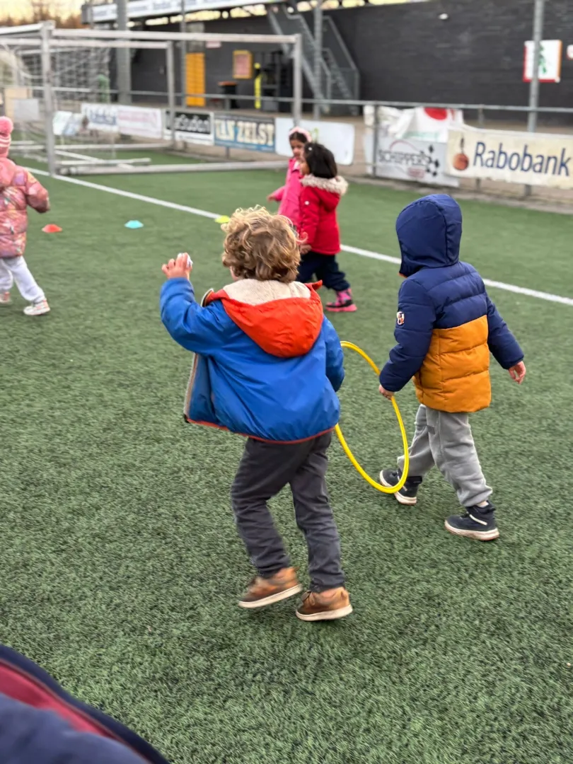 De tweede week van december (van 8 december tot en met 12 december) begon met veel regen. Daarom besloten we binnen activiteiten te doen. Met sinterklaas achter de rug, konden we langzaam naar kerst toe gaan leven en daarom maakte basisgroep een kersttekeningen. De kinderen maakten allerlei leuke creaties, zoals kerstbomen, kerstmannen en zelfs kerstspinnen! De andere basisgroepen deden Tiktak boem en pingpong. De dagen erna klaarde het weer op en konden we naar buiten met de kinderen. Op dinsdag stond er voor de oudste kinderen een voetbalpartij op de planning. Verder gingen de kinderen aan de slag met octopus tikkertje, het stoplichtspel en het spel ‘’samen draaien’’. Het stoplichtspel werd nog niet eerder gespeeld met deze basisgroep en was daarom een leuke en spannende uitdaging voor de kinderen. Bij dit spel staat samenwerking centraal. Het spel werkt ongeveer hetzelfde als Annemaria koekoek, maar bij dit spel spelen de kinderen niet individueel. De kinderen moeten samen met hun groep naar de overkant rennen, maar moeten hierbij onderweg allerlei spullen oprapen en meenemen. Het is van belang dat iedereen meehelpt en op tijd stilstaat, zodat de groep de finishlijn samen kan halen. Als één van de kinderen niet op tijd stilstaat of één van de voorwerpen vergeten wordt, moet de gehele groep terug naar de finishlijn en moeten zij opnieuw beginnen. Ook stond er weer een extra activiteit op het programma, waar de kinderen zich voor hadden kunnen inschrijven. Ditmaal was dat laser gamen. De kinderen deden hierbij een spectaculaire partij rondom de pannakooi. We sloten de week af met kleurenrace, koning van het veld en ballenregen. Bij ballenregen speelt ieder team in eigen vakken. Zij gaan proberen om ervoor te zorgen dat alle ballen uit hun vak verdwijnen en proberen deze ballen vervolgens naar de andere vakken te spelen. Alle teams proberen het elkaar zo moeilijk mogelijk te maken. Als de timer afgaat mogen de teams niet meer aan de ballen komen. Het team met de minste ballen in hun vak, wint het spel.