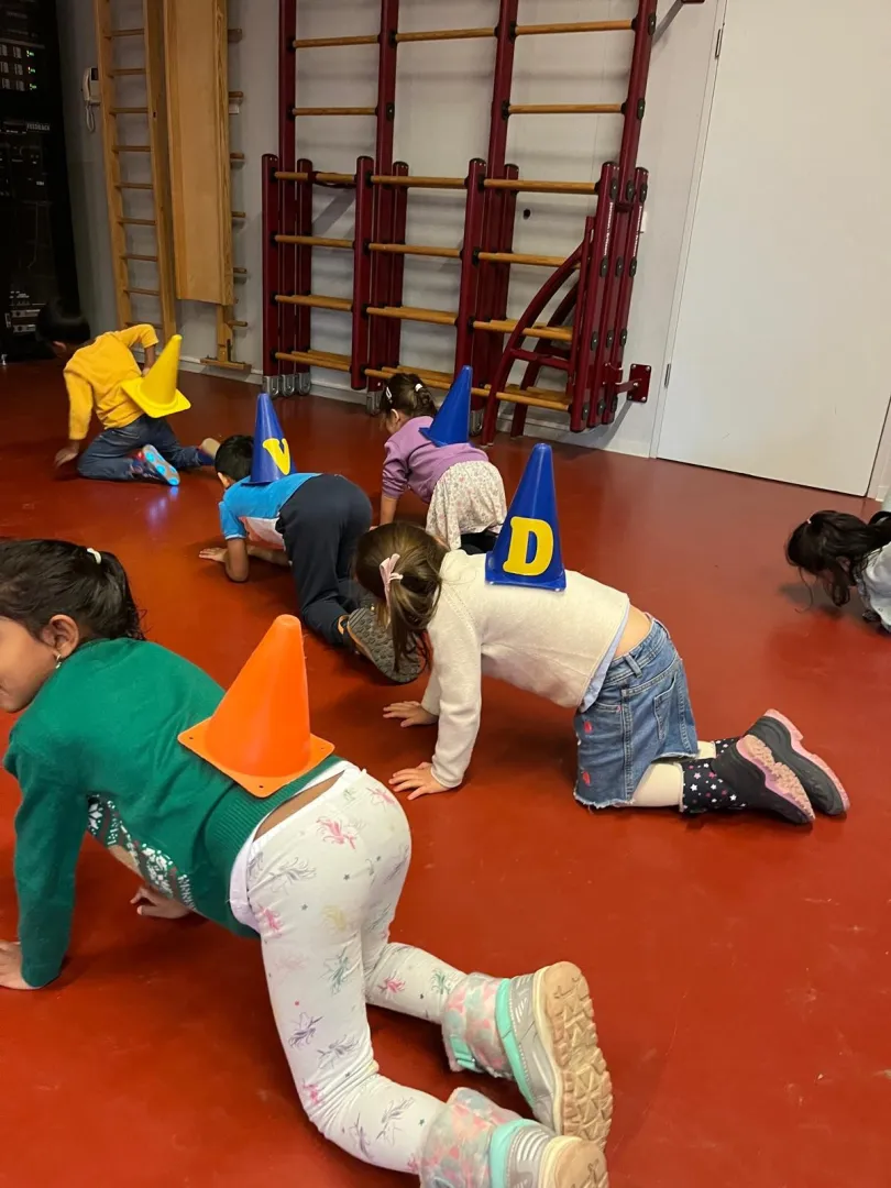 Ook in de gymzaal stonden er weer leuke en actieve spellen op het programma. Zo deden we onder andere de schildpaddenrace en levend stratego! De kinderen deden fanatiek mee, werkten samen en bedachten slimme strategieën om te winnen. Het was mooi om te zien hoe enthousiast en betrokken iedereen was tijdens het spel.