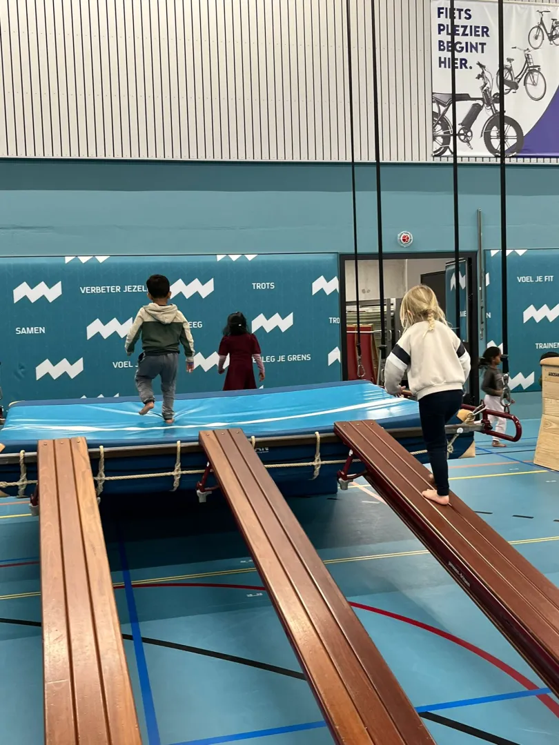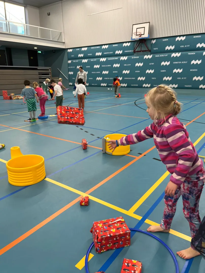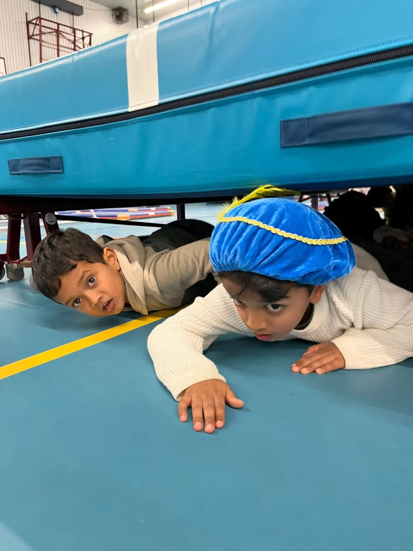 Op woensdag 26 november is de grote gymzaal omgetoverd tot een echt Pietenparcours! Overal staan uitdagende onderdelen klaar: lange banken worden daken, kasten worden klimmuren en zachte matten vormen spannende sluiproutes. De kinderen kunnen rennen, springen en balanceren alsof ze echte Pieten zijn die zich voorbereiden op de grote avond. Zo is er geoefend met pakjes gooien, klauteren over hoge obstakels en kruipen onder hindernissen—precies zoals de hulppieten dat ook moeten kunnen. Het is niet alleen ontzettend leuk, maar ook goed voor hun motoriek, zelfvertrouwen én samenwerking. Aan het einde van de middag ontvangt iedereen natuurlijk een welverdiend Pietendiploma. Laat de pakjesavond maar komen!
