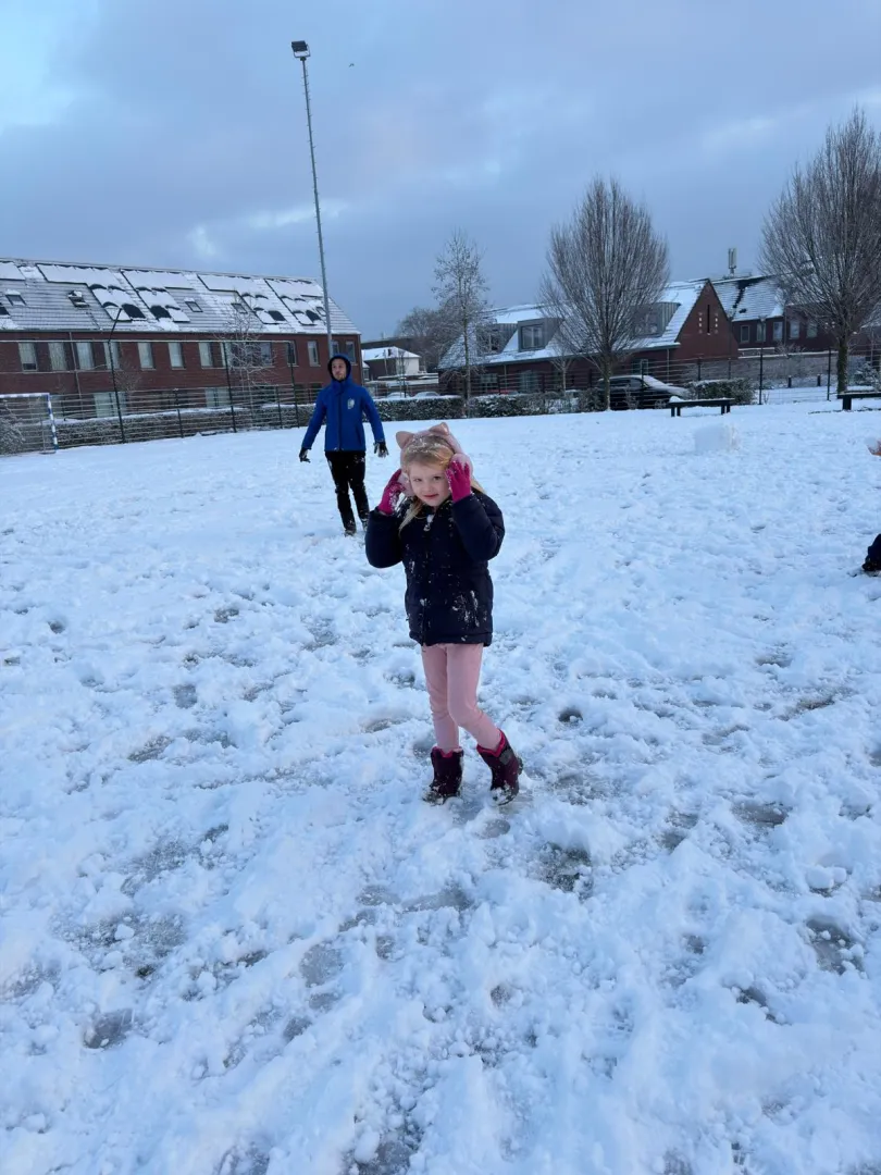 We zijn het jaar meteen goed begonnen met een flinke dosis sneeuwpret. Het grasveld veranderde in een wit speelparadijs waar we enorme sneeuwballen hebben gerold en natuurlijk een groot sneeuwballengevecht hebben gehouden voor de liefhebbers. Op woensdagmiddag zijn we zelfs naar het park in Meerhoven gegaan om van de hoge heuvels te sleeën. Voor sommige kinderen was dat in het begin best spannend, maar uiteindelijk ging iedereen vol enthousiasme naar beneden en hebben we samen een hele gave middag beleefd. Later die week hebben we op ons eigen sportpark nog een reuzensneeuwpop gebouwd. Dat maakte het wintergevoel helemaal compleet.