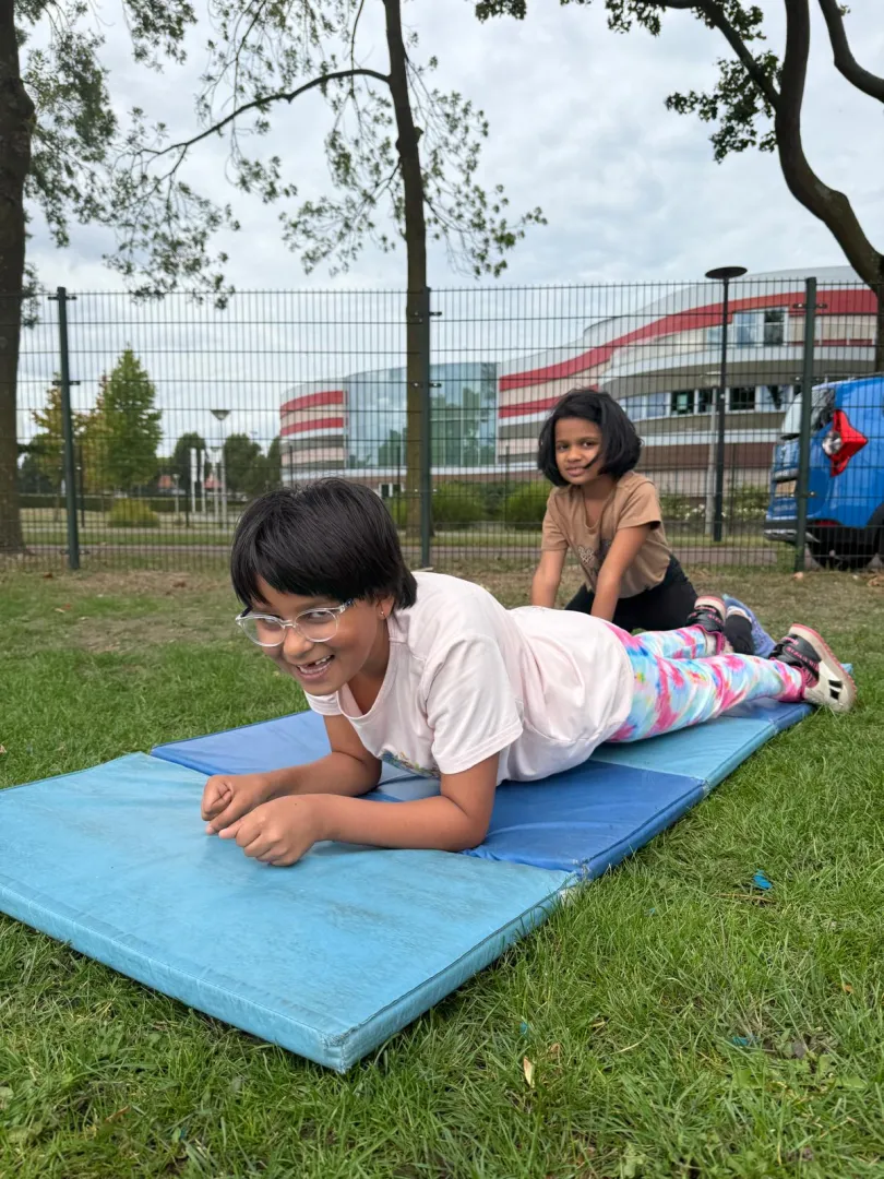 Daarnaast hadden we op een maandagmiddag een stoere bootcamp onder leiding van meester Niels. De kinderen werkten zich flink in het zweet met verschillende oefeningen, maar met veel plezier! Op een vrijdagmiddag hebben we het hele sportpark gebruikt voor een spannend potje Jachtseizoen. De groep werd verdeeld in drie teams: twee teams verstopten zich, terwijl het andere team ze moest zoeken, net zoals in het bekende spel van StukTV. Het was een groot succes!