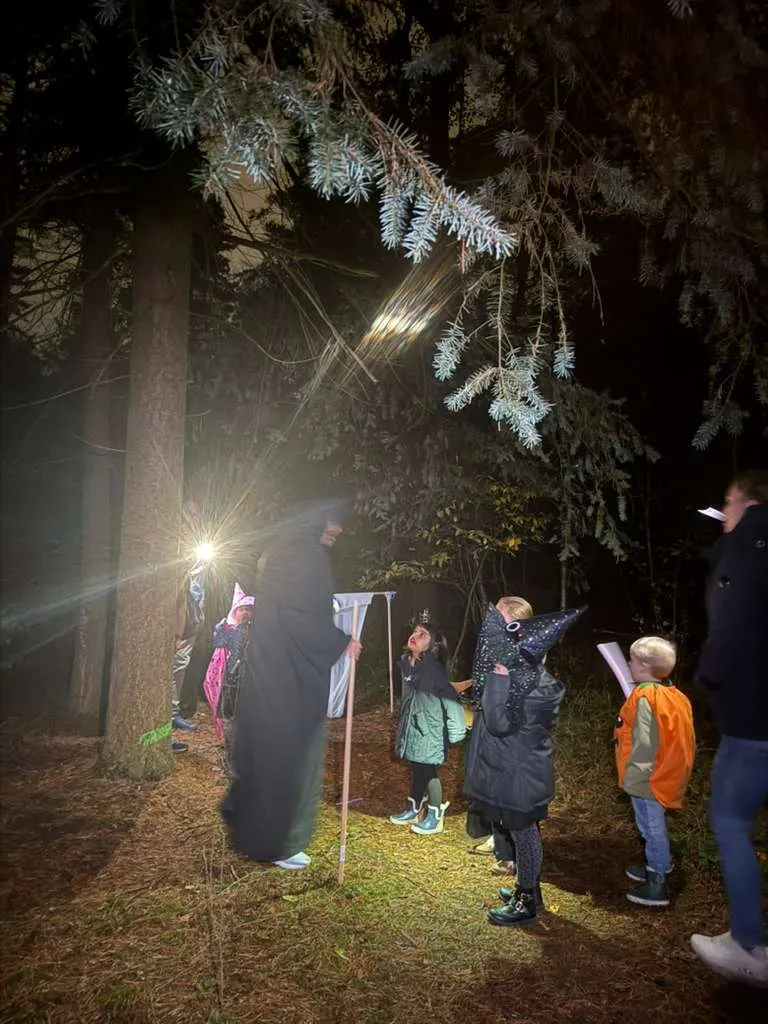 We sloten de maand af met de Halloweentocht en dat was weer een groot succes. In kleine groepjes liepen de kinderen samen met de begeleiding een spannende route, vol lichtjes, versieringen en een paar griezelige verrassingen onderweg. Gelukkig werd er minstens zoveel gelachen als geschrokken, want de sfeer was vooral gezellig. Na afloop werd er nog lang nagepraat met een marshmallow en chocomel! Het was een geslaagde tocht en we gaan dit volgend jaar zeker weten nog eens doen.