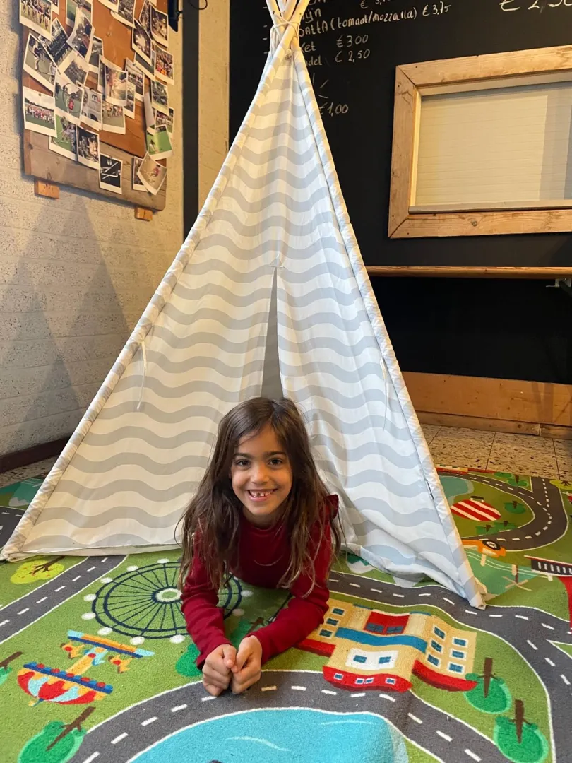 Op dagen dat het weer even tegenzat, lieten we ons niet uit het veld slaan. Op natte dagen speelden we binnen verstoppertje, deden we potloodpoepen en maakte we er creatieve knutselmiddagen van.