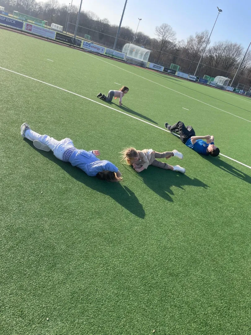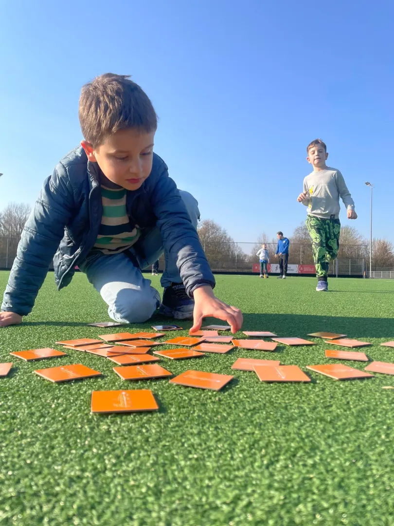 Natuurlijk hebben we ook veel buiten spelletjes gespeeld. Samen voetballen met de medewerkers, steppen rond de velden, fruit eten in de zon. We hebben ook leuke nieuwe spelletjes gedaan, zoals estafette memory!