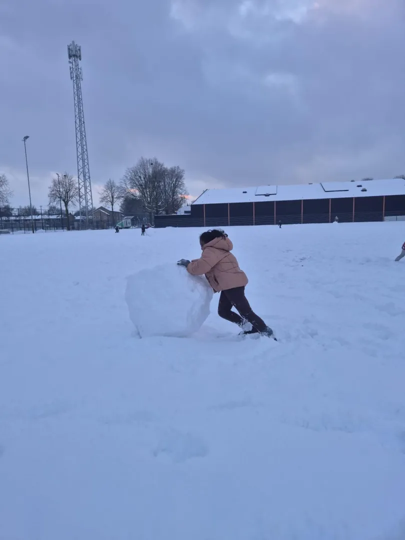 We maakten grote sneeuwballen (sommige bijna groter dan de kinderen zelf!), bouwden prachtige sneeuwpoppen en natuurlijk kon een echte sneeuwglijbaan niet ontbreken. Met rode wangen van de kou en grote glimlachen op hun gezichten hebben de kinderen volop genoten van deze winterse week. Wat een plezier!