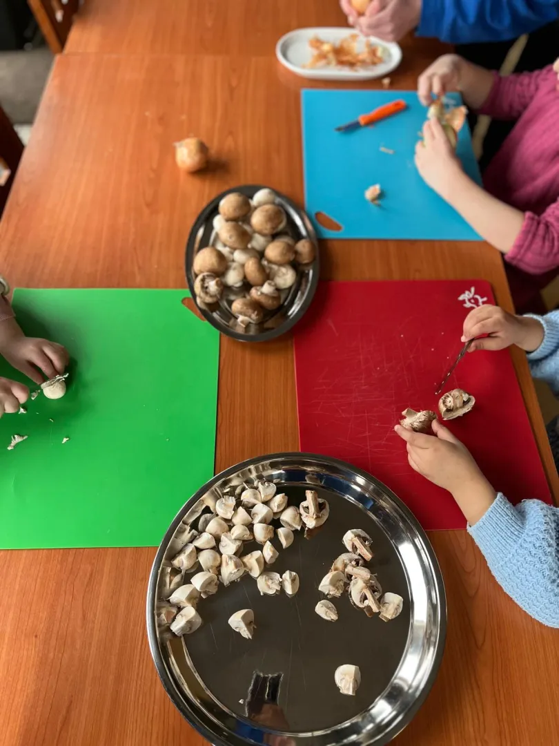 Ook hebben we samen champignonsoep gemaakt. De kinderen hielpen enthousiast mee met snijden, roeren en proeven. Het resultaat? Een heerlijke, zelfgemaakte soep waar we samen trots op waren.