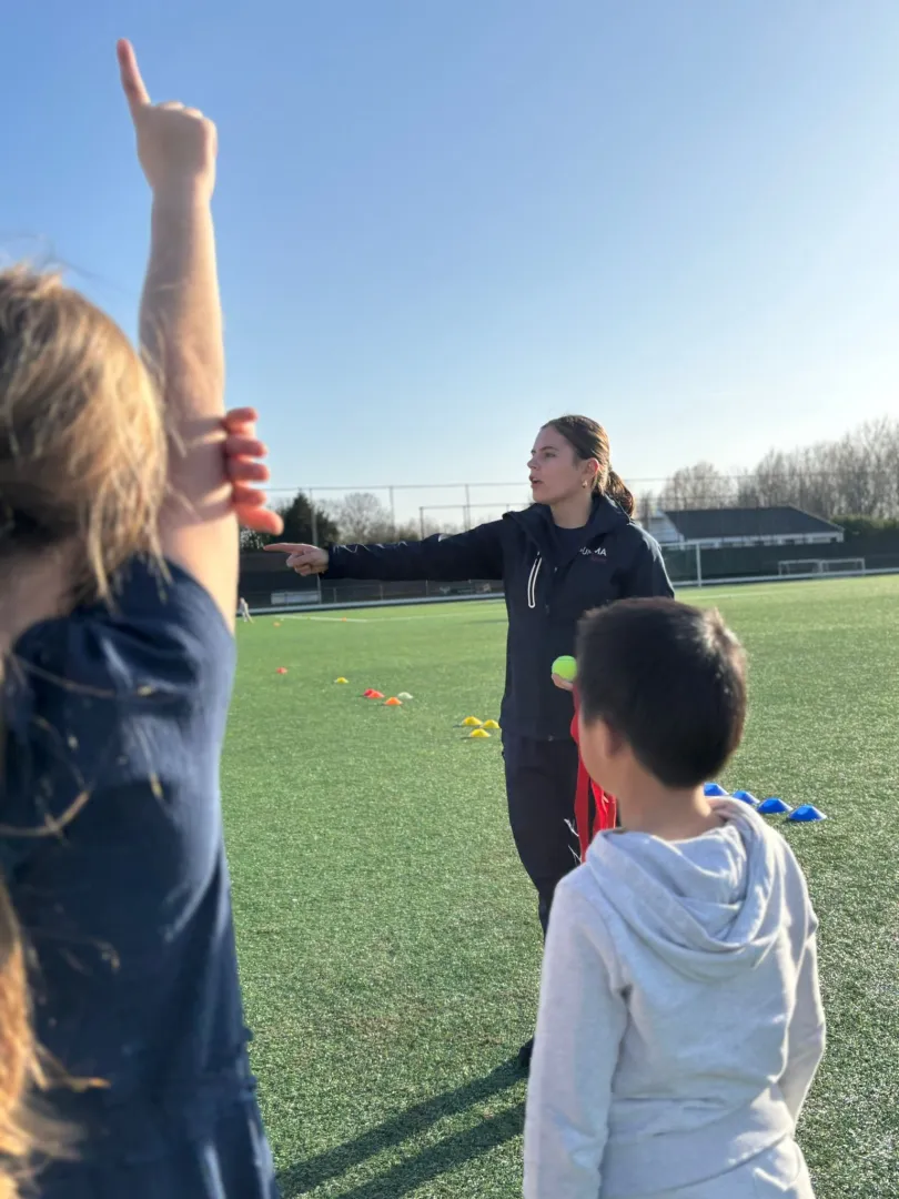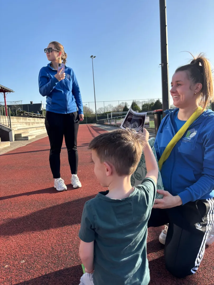 Afgelopen week hebben we weer volop genoten van leuke en uitdagende activiteiten. Wat dacht je bijvoorbeeld van het spannende kat-en-muisspel? Of de fanatieke nummerestafette? Ook het pacman-tikkertje bleek een grote hit onder de kinderen. Bij dit spel bewegen de kinderen zich door vier vakken. Om van het ene vak naar het andere te gaan, moeten ze eerst door de poortjes heen. Ondertussen is er natuurlijk ook een tikker, die probeert zoveel mogelijk kinderen te tikken. Ben je getikt? Dan ga je even langs de lijn staan. Maar niet voor lang: zodra er drie kinderen af zijn, mag de eerste alweer meedoen. Later in het spel wordt het nog spannender, want dan verschijnen er rode lintjes op het veld — de ‘kersjes’. Wie zo’n kersje weet te bemachtigen, kan tien seconden lang niet getikt worden. Dat zorgt voor veel enthousiasme én slimme strategieën! Alsof dat nog niet genoeg was, had Marloes deze week ook een bijzondere verrassing. Ze kwam met een mysterieuze doos en liet één van de kinderen erin grabbelen. Wat eruit kwam? Een paar kleine sokjes… en een echofoto! Daarmee maakte Marloes het nieuws bekend: ze is zwanger!