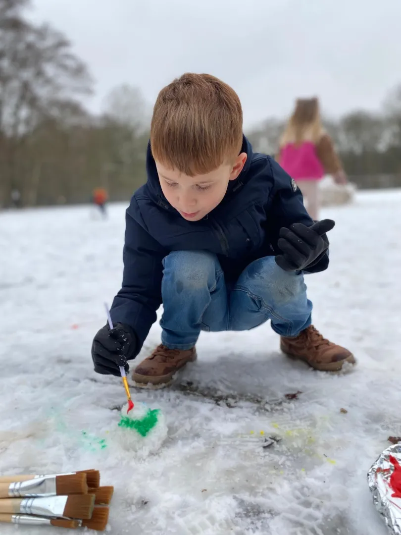 We deden ook verschillende activiteiten met de sneeuw. Zoals sneeuw verven!!