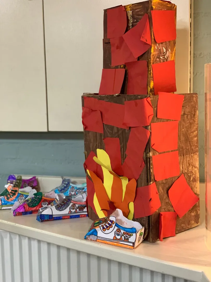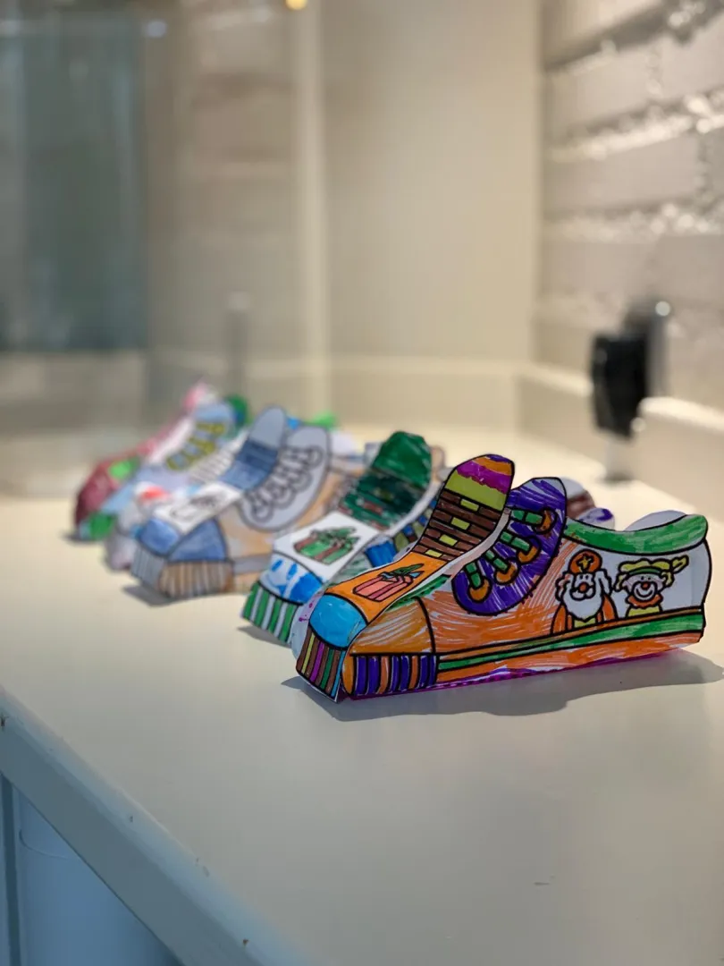 OOK HEBBEN WE SCHOENTJES GEKNUTSELD OP DE OPVANG VOOR 5 DECEMBER. KIJK EENS HOE MOOI ZE ERBIJ STAAN NAAST ONZE OPENHAARD