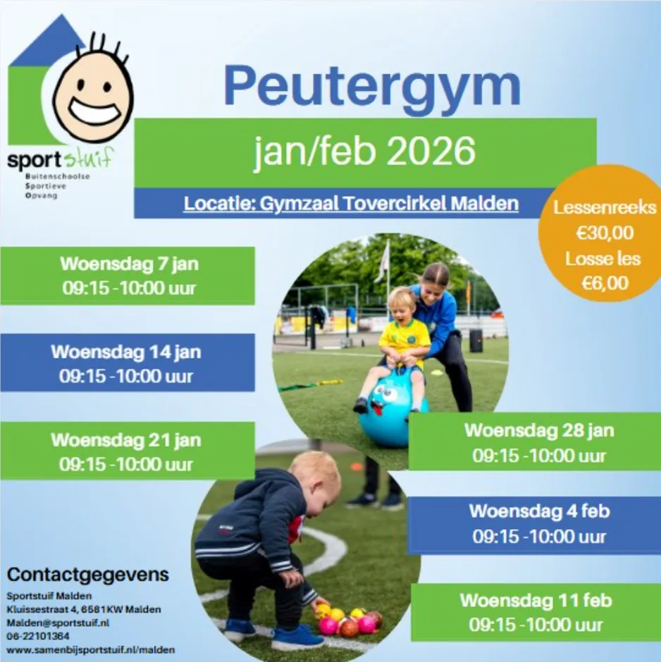 Peutergym β nieuwe reeks jan/feb! π Heeft jouw peuter energie voor tien? π€ΈββοΈπ« In januari en februari starten we weer met een nieuwe reeks Peutergym bij Sportstuif! Samen bewegen, ontdekken, klimmen, klauteren en vooralβ¦ heel veel plezier! π Je kunt kiezen voor een compleet lessenpakket Γ³f losse lessen net wat bij jullie past. Meld je nu aan!