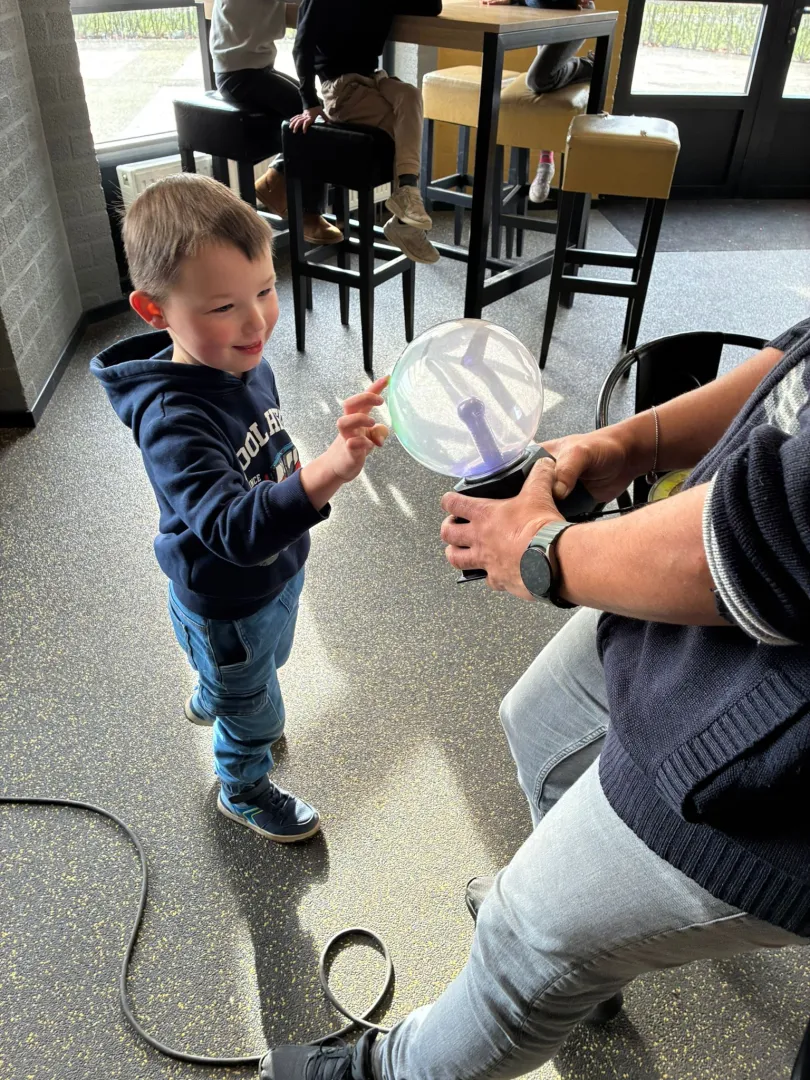 In de carnavalsvakantie gingen we vrolijk verder. We ontdekten tijdens een workshop hoe je zelf elektriciteit kunt maken, nieuwsgierige blikken en verwonderen de ogen keken toe naar dit natuurkundige fenomeen. Ook gingen we op bezoek bij een clown. Hij had heel veel humor en wist alles van ballonnen knopen, met lachende gezichten als resultaat. Diezelfde week hebben we een hele dag mogen spelen bij Ballorig, waar geklommen en geklauterd werd tot de energie echt op was.