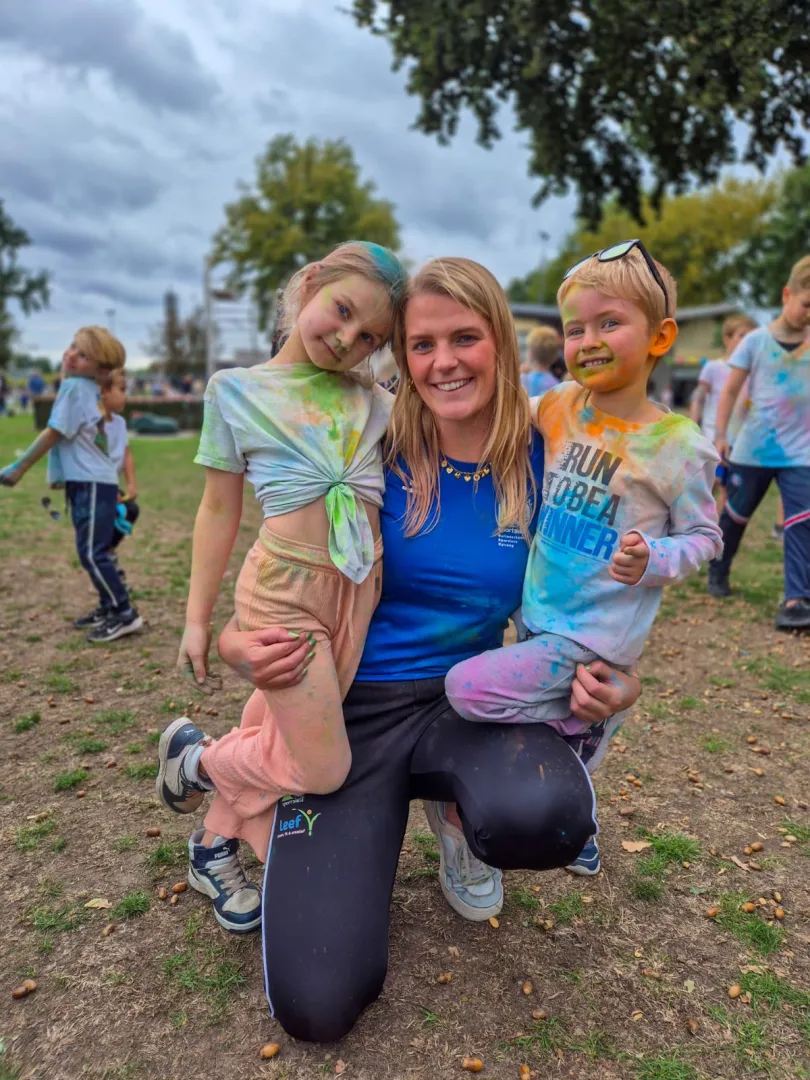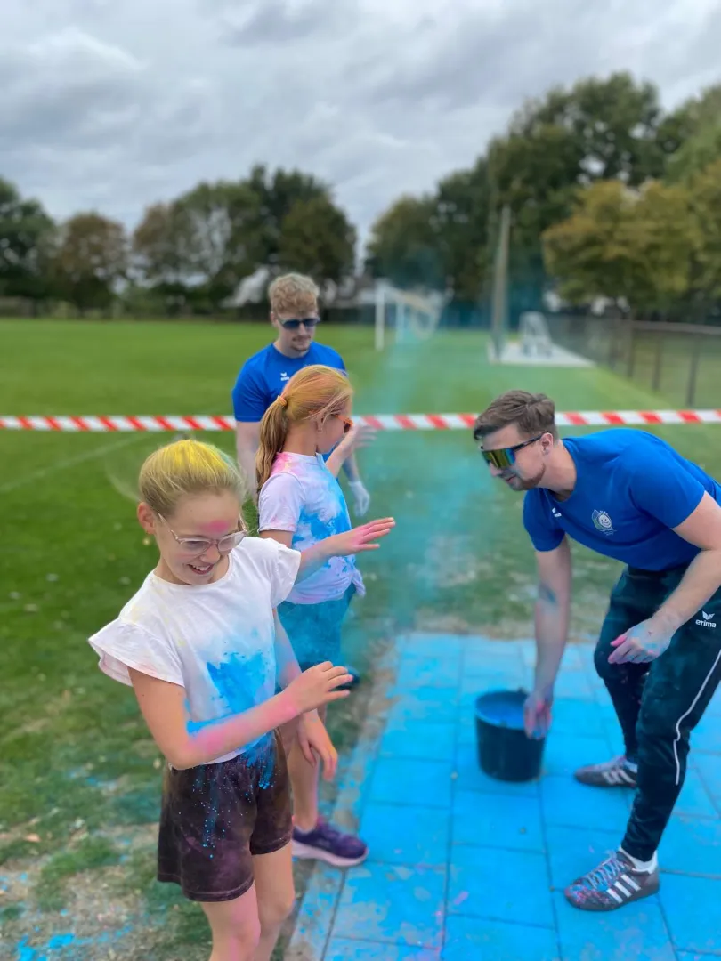 Wat was het weer een feestje! Met zo'n 300 kinderen die door de kleurenwolken heen renden, sprongen en dansten, was het terrein omgetoverd tot een regenboog van vrolijkheid. Overal klonken lachjes, enthousiaste kreten en natuurlijk wat gekleurde poederexplosies!