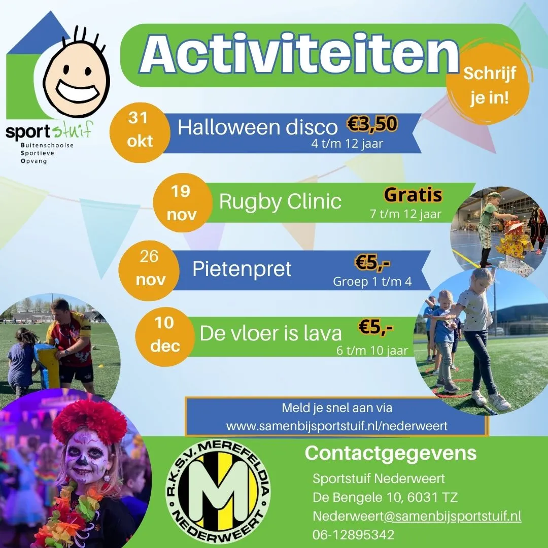 Van Halloween tot een stoere rugby clinic, en zelfs een spannende ‘De vloer is lava!’ middag. Het wordt weer één groot avontuur. Iedere maand staat er wel iets nieuws te gebeuren, en we kunnen niet wachten om samen met jullie weer te lachen, sporten en genieten.