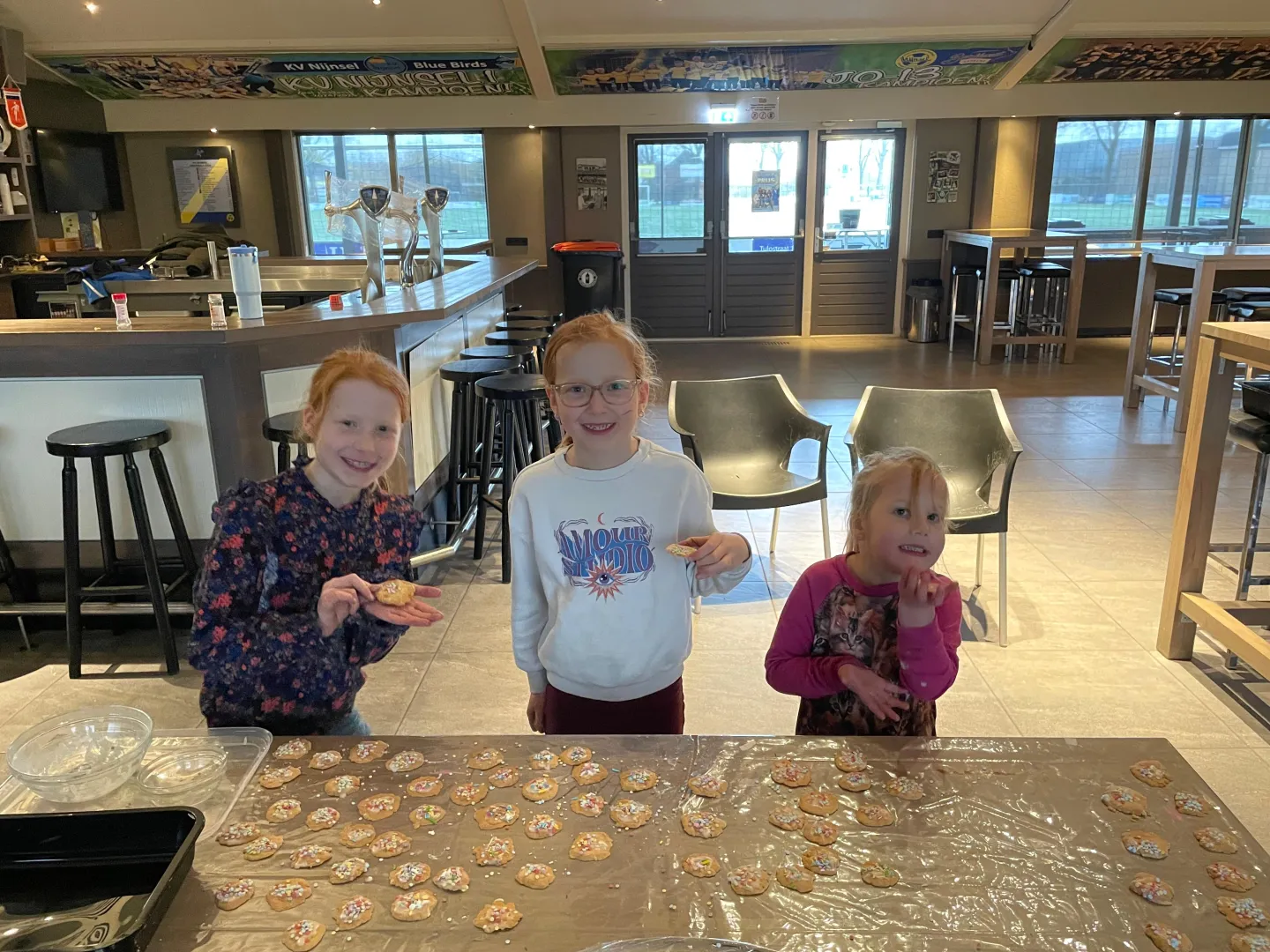 Tijdens de studiedag hadden we de handen vrij om de keuken in te duiken. De geur van versgebakken koekjes verspreidde zich al snel door de hele locatie. Maar we hielden al dat lekkers niet voor onszelf; in de middag brachten we een bezoekje aan Sportstuif Son en Breugel. Het was super gezellig om de koekjes samen met alle kinderen daar op te peuzelen. Samen delen maakt het toch nét even lekkerder.