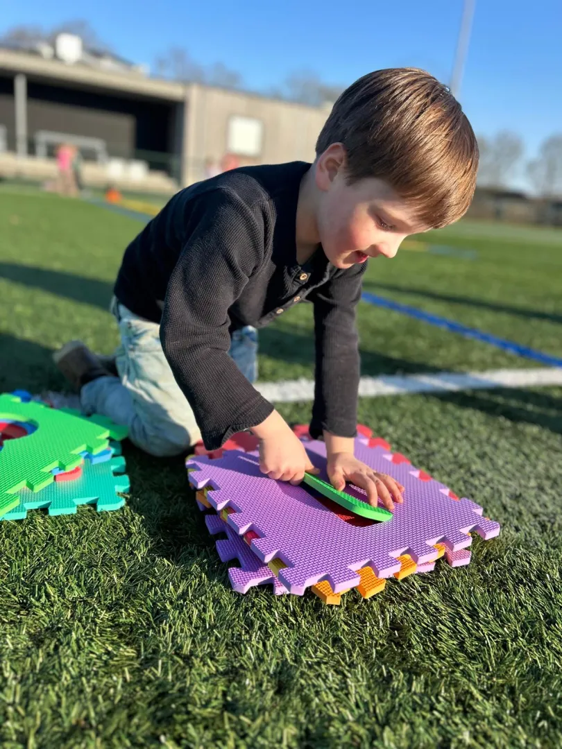 Tijdens een andere estafette moesten foampuzzels zo snel mogelijk in elkaar geklikt worden. Teamwork en snelheid waren hierbij erg belangrijk.