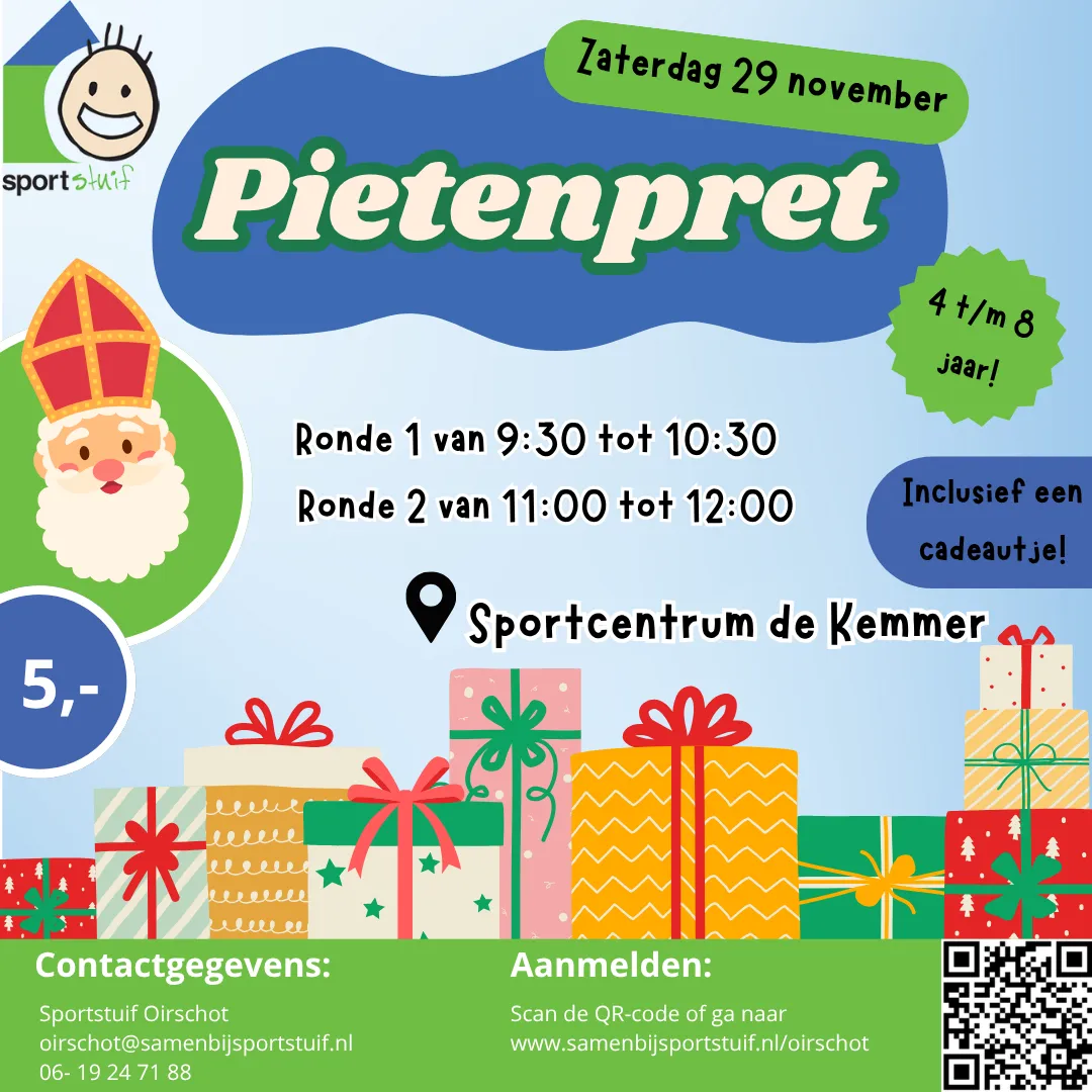 Schrijf je dan snel in voor Pietenpret of Peuter Pietenpret via www.samenbijsportstuif.nl/oirschot
