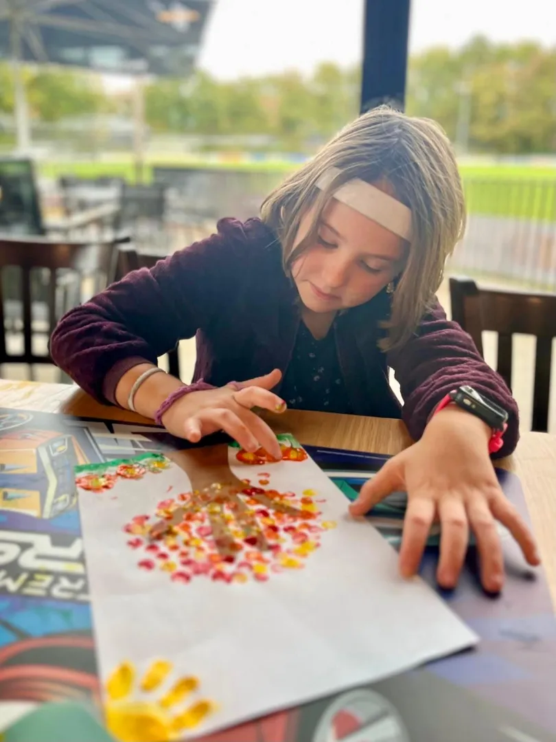 Daarnaast werd werd er een spannende dartbordestafette gespeeld, waarin snelheid en precisie hand in hand gingen. We eindigde de week met het maken van hapjes, deze aten we vervolgens tijdens de lunch gezamenlijk op. De week De herfstvakantie zat vol kleur, creativiteit en plezier.