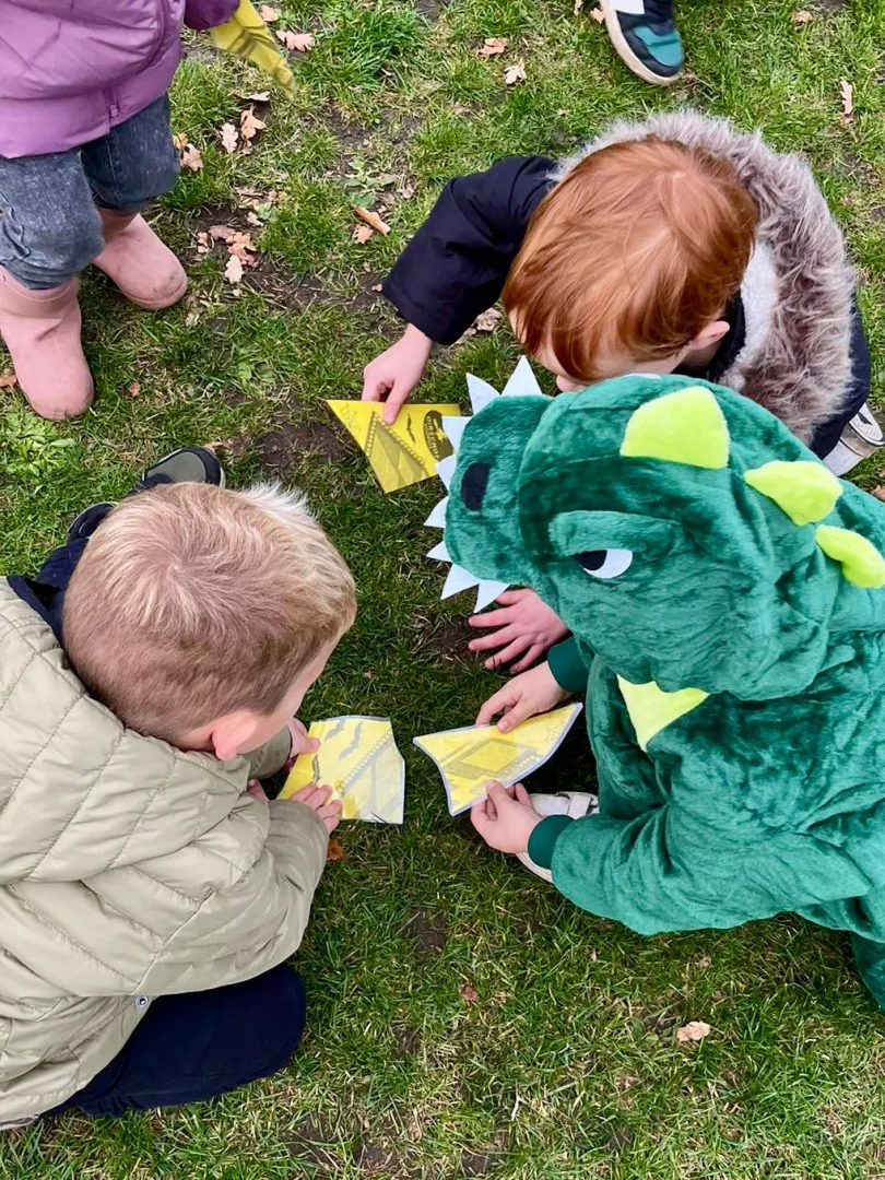 Naast de VMA hadden alle leeftijdsgroepen bij ons op de BSO hun eigen Halloweenprogramma. De jongste kinderen maakten spookjes van papieren bordjes. De middelste groep stortte zich op een intens potje levend stratego buiten, waarbij strategie en snelheid belangrijk waren. De oudste kinderen speelden Weerwolven, een spel vol spanning, slimme keuzes en geheimhouding. Het was een griezelige, maar ontzettend gezellige middag.