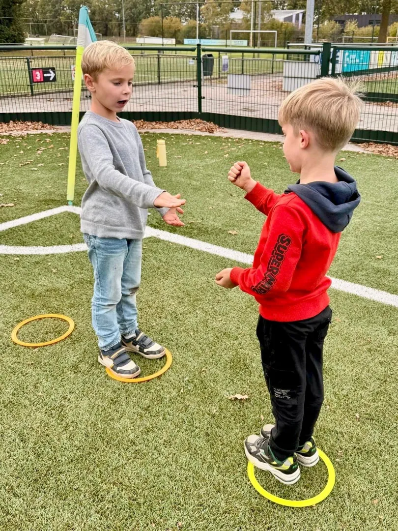 Snel nadenken en teamwork kwamen samen tijdens de getallenrace, waarbij de teams zo snel mogelijk op de juiste volgorde de cijfers 1 t/m 10 moesten vinden onder de hoedjes, het was dus steeds een verrassing welk cijfer er onder het hoedje lag. Tijdens de dierenestafette veranderden de kinderen in hun favoriete dieren en bewogen ze als een kikker, kangoeroe of leeuw door het parcours. De klassiekers mochten natuurlijk niet ontbreken, er werd gesprint en stilgestaan tijdens Anne Maria Koekoek, en bij de steen-papier-schaar estafette was het elke ronde spannend wie er won en door mocht springen over de stippen.