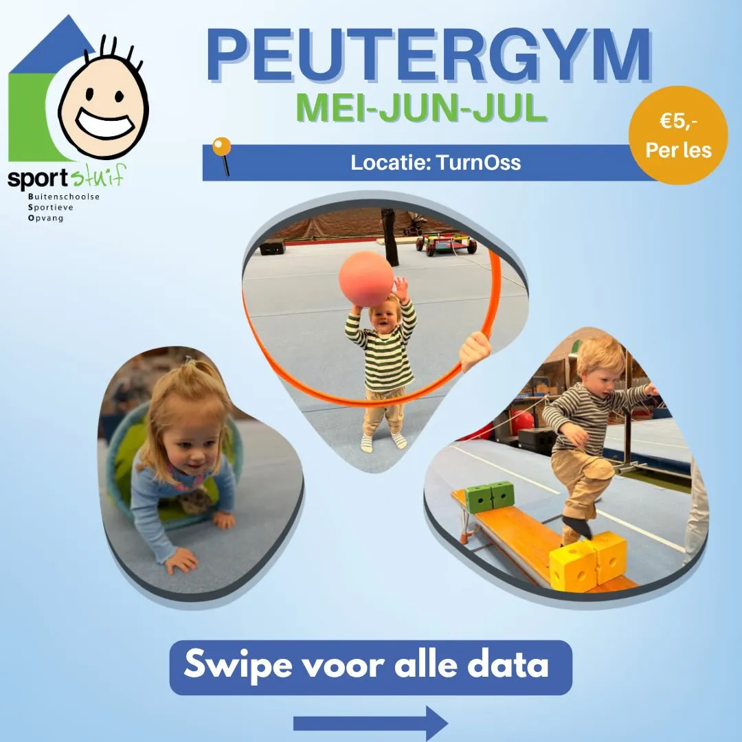 Goed nieuws voor alle kleine sportievelingen: vanaf midden mei starten we weer met onze gezellige peutergymlessen bij Turnoss! 🤩