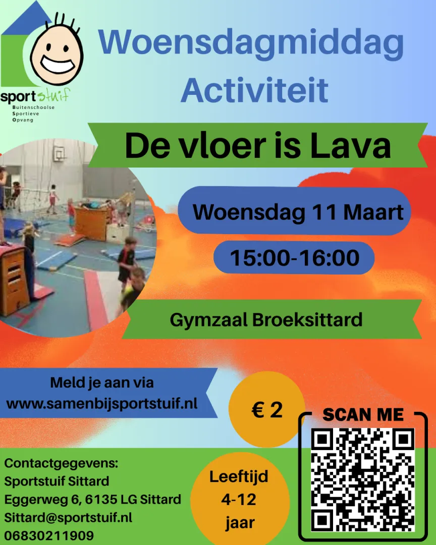 Er staat weer iets heel leuks op de planning: De vloer is lava! De aanmeldingen hiervoor zijn inmiddels geopend, en we kunnen niet wachten om samen te springen, klauteren, rennen en vooral heel hard te lachen.