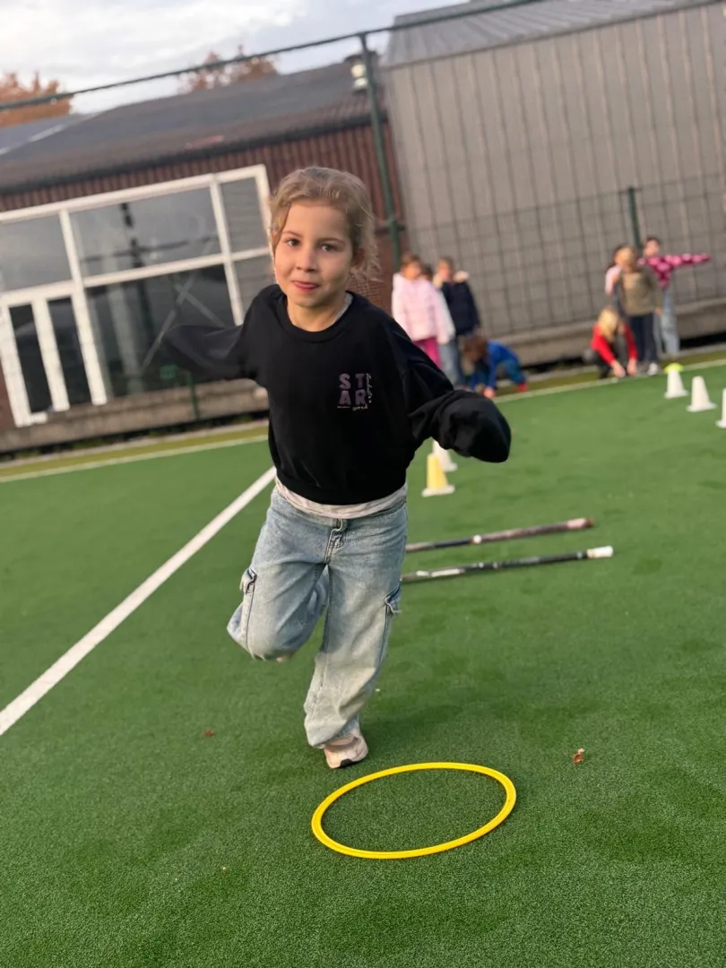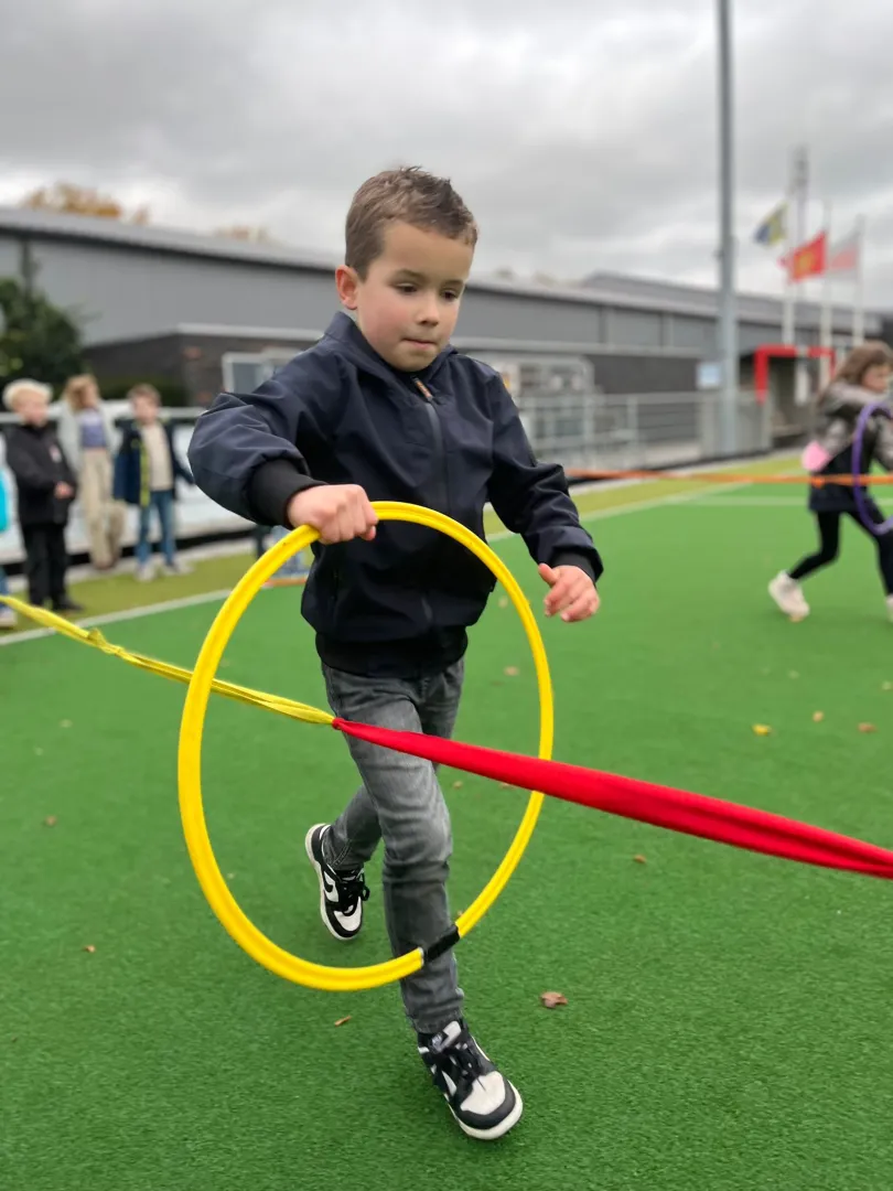 Deze week is de eerste week nadat de klok is teruggezet. Dat betekent dat het iets eerder donker wordt. Daarom zorgen we ervoor dat we veel leuke spelletjes doen voordat het te donker wordt om buiten te spelen. We hebben spellen gedaan zoals verbonden hoepel-estafette, domino race en overloop trefbal. Bij verbonden hoepel-estafette staat er een kind in een stapel hoepels en houdt het een touw vast dat is gemaakt van lintjes. Aan de andere kant van het touw staat ook een kind. De andere kinderen van het team verplaatsen de hoepels van het ene kind naar het andere zonder het touw te raken. Bij domino race wordt er een estafette gelopen waarbij aan het einde dominosteentjes liggen. Er ligt ook een voorbeeldfiguur gemaakt van de steentjes. De kinderen halen één steentje per keer op en proberen daarmee het figuur na te maken. Bij overloop trefbal wordt er gewoon trefbal gespeeld, maar als iemand af is, gaat hij niet aan de kant: hij sluit zich aan bij het andere team.