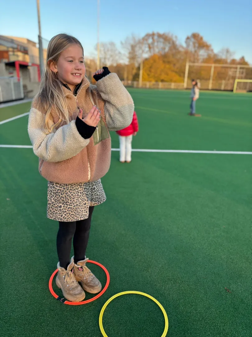 Het is de laatste week van de maand en de temperaturen gaan nu echt hard naar beneden, maar door onze actieve activiteiten is het prima te doen. We hebben spelletjes gedaan zoals een hockey- en voetbaltoernooitje, het lava-rotsen sprintspel en omdraai tikkertje. Bij het hockey- en voetbaltoernooitje werden er vier teams gemaakt. Alle teams spelen één keer voetbal en één keer hockey tegen elkaar. Het team dat de meeste wedstrijden wint, is de grote winnaar. Bij het lava-rotsen sprintspel liggen er overal ‘rotsen’ (hoepels) verspreid in het veld. De vloer is lava en de kinderen kunnen zich alleen over de rotsen verplaatsen. De leiding roept verschillende opdrachten, zoals “aardbeving!”, waarbij de kinderen zo snel mogelijk een andere rots moeten vinden. Bij omdraai tikkertje dragen vier kinderen gele, vier blauwe, vier rode en vier groene lintjes. Eén kleur begint met tikken. Wordt er een andere kleur geroepen, dan wordt die kleur ineens de tikker.