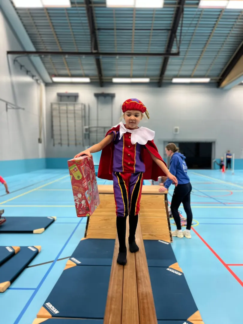 Het is de week dat Sinterklaas weer onderweg is naar Nederland, en dit geeft de kinderen altijd wat extra energie. Daarom hebben we veel leuke spelletjes gedaan om die energie er lekker uit te gooien. Zo hebben we spellen gedaan als rupsen trefbal, rond de tafel met grote bal en vortexbal. Bij rupsen trefbal staan alle kinderen in een hoepel. De hoepels liggen in een kring. Binnen de kring staan vijf kinderen die in een polonaise staan. De voorste is het hoofd van de rups en beschermt zijn ‘staart’ (het achterste kindje). De kinderen in de kring proberen met een bal de achterste af te gooien. Is hij af, dan stapt hij uit het. Dit gaat door tot het laatste kindje overblijft. Bij rond de tafel met grote bal wordt de groep in tweeën verdeeld. Iedereen staat aan een kant van het veld. In het midden staat een bank. De eerste in de rij gooit een grote bal naar de overkant over de bank. Daar moet de eerste de bal terug slaan. Als je hebt geslagen, ren je naar de overkant en sluit je daar weer aan. Lukt het niet om de bal terug te slaan, dan ben je af. Dit gaat door tot de laatste twee spelers over zijn. Bij vortexbal wordt er slagbal gespeeld, maar dan met een vortex.