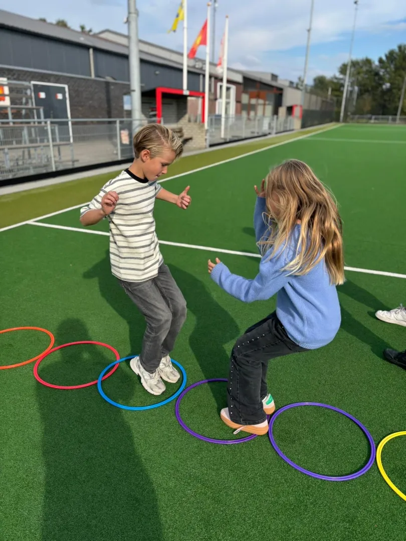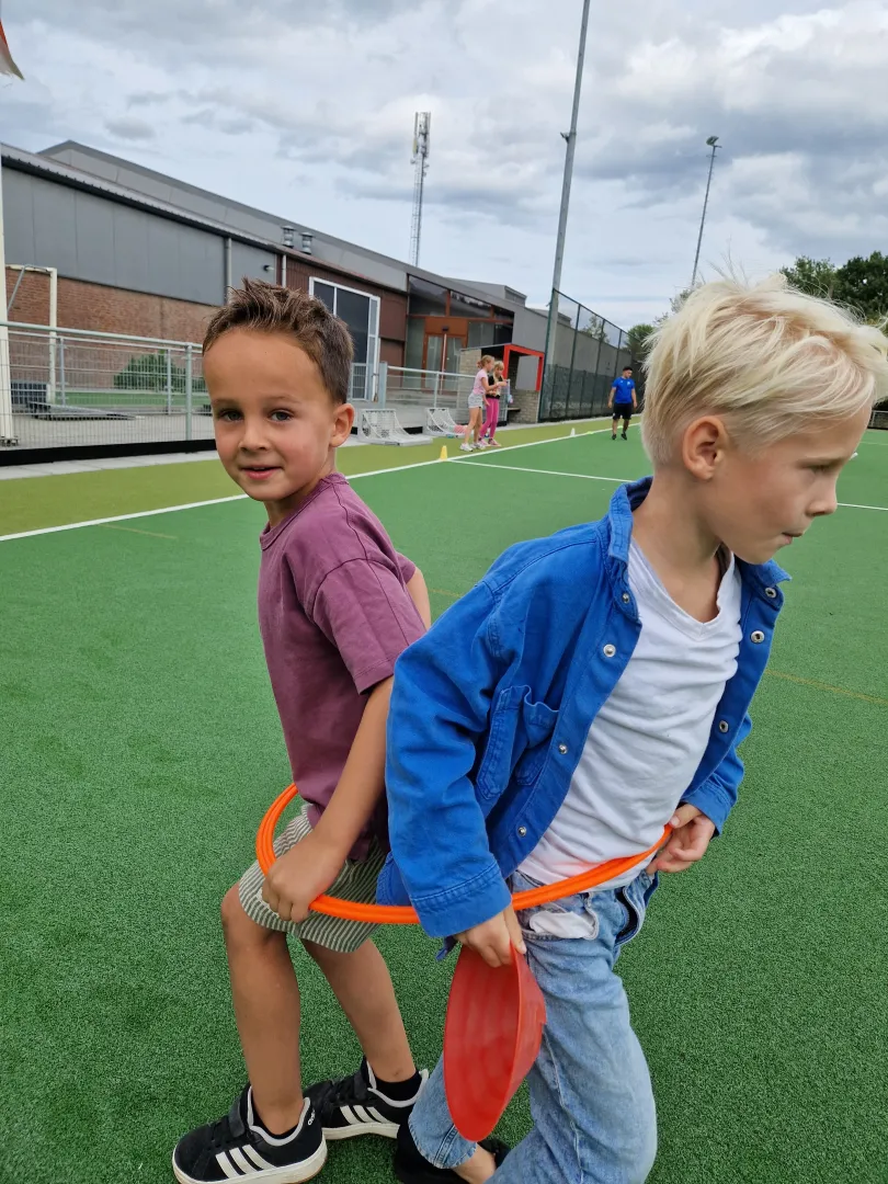 In deze week vond de eerste studiedag van het nieuwe schooljaar plaats. Tijdens deze dag zijn de kinderen naar speeltuin Het Gouden Woud geweest, waar ze zelf naar goud mochten zoeken! Ook de rest van de week zat vol leuke activiteiten, maar dan op ons eigen Sportstuif-terrein. Zo hebben we onder andere spellen gespeeld als Tikkers en Tovenaars en Boter, Kaas en Eieren. Bij Tikkers en Tovenaars zijn er drie rollen die aan het begin van het spel verdeeld worden. Eén tik op de schouder betekent dat je een gewone speler bent, twee tikken maken je een tikker, en drie tikken maken je een tovenaar. De tikkers proberen andere kinderen te tikken, terwijl de tovenaars kinderen kunnen bevrijden door hen op de schouder aan te raken. Bij Boter, Kaas en Eieren strijden twee teams tegen elkaar. Steeds zitten er twee spelers van elk team met de rug tegen elkaar in een hoepel. Ze pakken een hoedje op en nemen dat mee naar het speelveld, waar ze proberen drie op een rij te maken.
