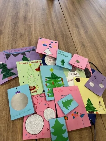 Tussendoor hebben we ook volop genoten van de gezelligheid rondom Kerst. Zo hadden we een heerlijk kerstontbijt, waarbij we samen de dag rustig en gezellig begonnen. Daarnaast hebben de kinderen kerstkaarten gemaakt voor opa’s en oma’s. Deze kaarten zijn met veel liefde geknutseld en daarna ook persoonlijk rondgebracht, wat zorgde voor mooie en warme momenten.