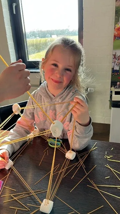 Op locatie hebben we ook super leuke activiteiten gedaan. Eén van de favorieten? De hoogste toren bouwen van spaghetti en marshmallows! Wat werd er fanatiek gebouwd en samengewerkt. Sommige torens vielen om… maar dat maakte het alleen maar grappiger