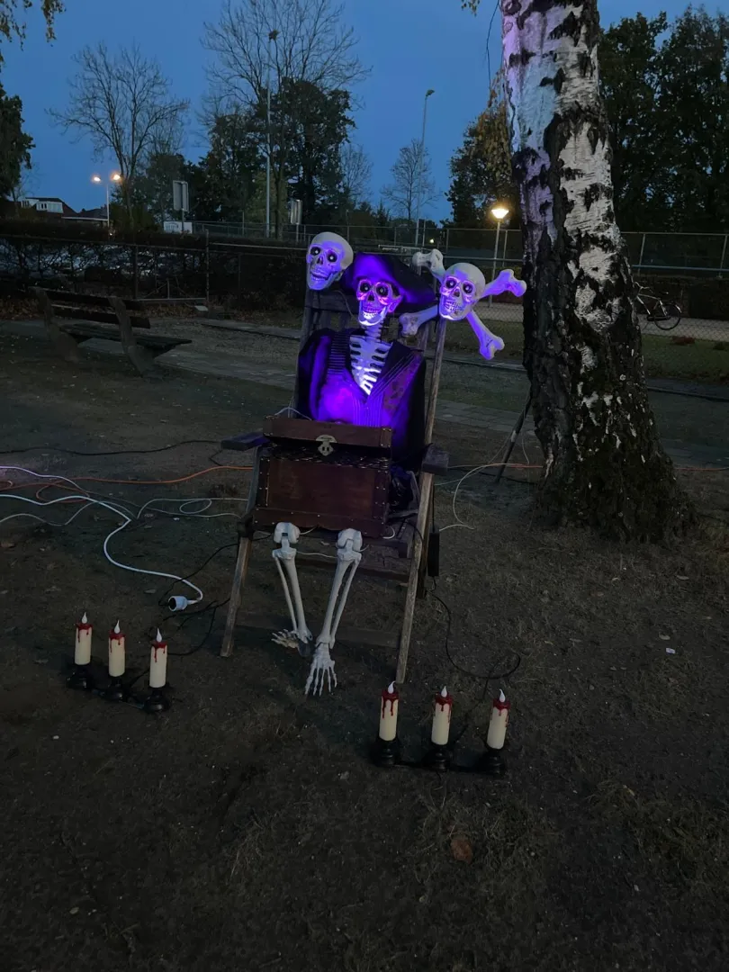 De hele route was prachtig versierd met lichtjes, pompoenen en mysterieuze geluiden. De kinderen liepen met hun zaklampen en griezelige kostuums door de donkere straten, wat het extra spannend maakte. Overal klonk gelach, geroep en af en toe een klein gilletje van schrik precies zoals het hoort bij Halloween!