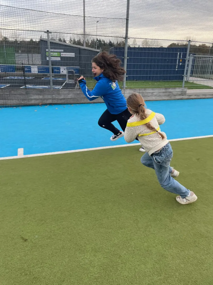 Met de jongere kinderen speelden we ondertussen politie, politie, hoe laat is het?. Dit blijft altijd een groot succes! Op deze manier konden alle kinderen spelletjes doen die passen bij hun eigen leeftijd en niveau. Zo werd iedereen op een leuke manier uitgedaagd en kon elk kind succes ervaren.