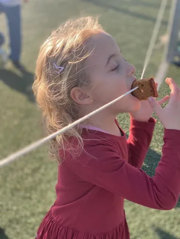 Van bowlen tot spijkerpoepen en koekhappen, vooral dat laatste viel erg in de smaak. Lekker smullen en samen lachen!